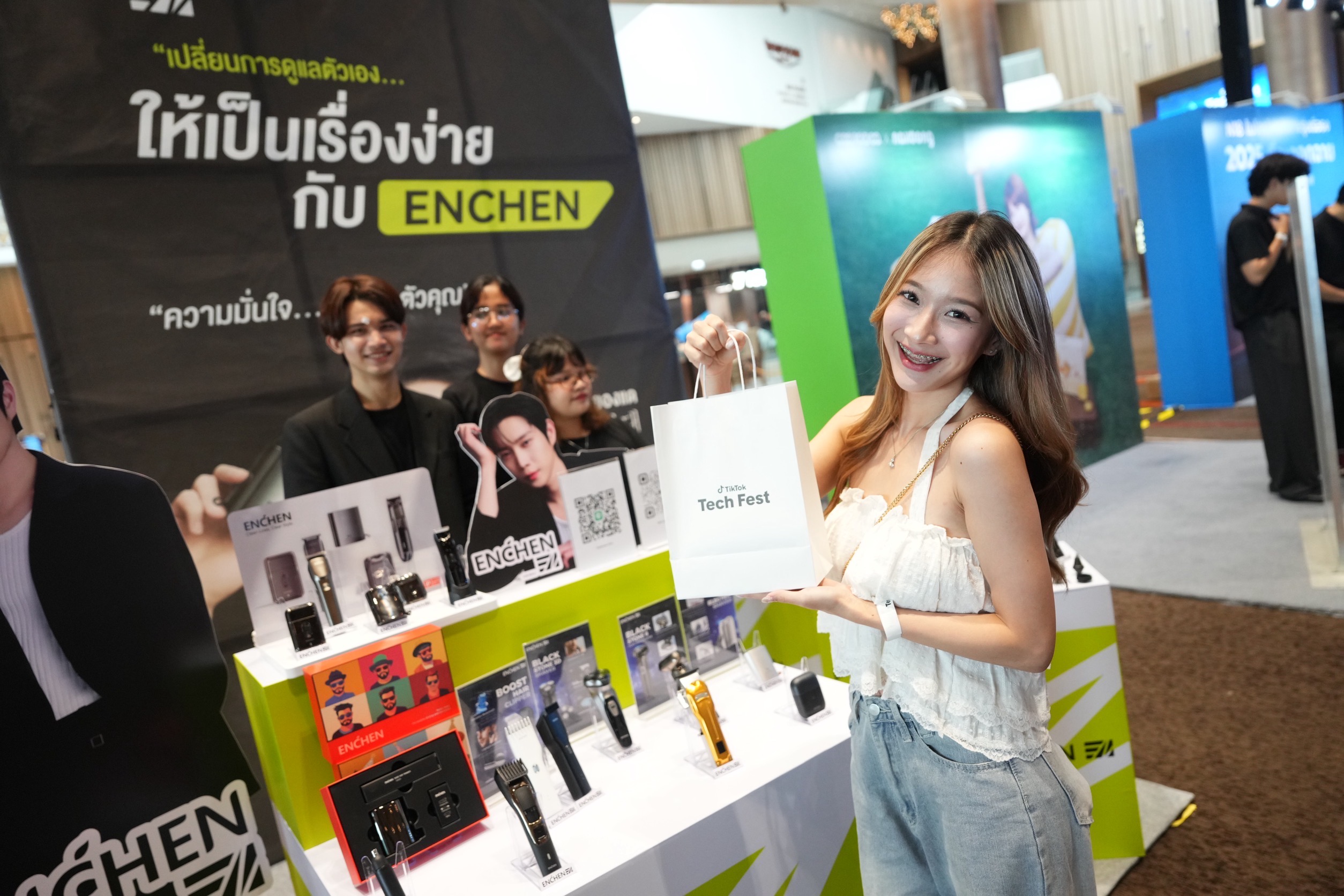 Tiktok Tech Fest เป็นงานที่เปิดโอกาสให้ผู้บริโภค – นักพัฒนา – แบรนด์ ได้พบปะกัน โดยมีติ๊กต๊อกเกอร์แถวหน้าเมืองไทยที่หลายคนคุ้นหน้าคุ้นตามาร่วมอัปสกิลสร้างสรรค์คอนเทนต์ สำหรับงานนี้มีเป้าหมายหลักในการสร้างระบบนิเวศ หรือ Ecosystem เทคโนโลยี พร้อมยกระดับบทบาทไทยในเวทีเทคโนโลยีโลก โดยเทรนด์ ‘3C Tech’ (Computer, Communication, Consumer Electronics) เป็นเทรนด์ที่กำลังมาแรงในปีนี้ มีทิศทางมุ่งไปที่ AI – Artificial Intelligence (ปัญญาประดิษฐ์), IoT – Internet of Things , Wearable (อุปกรณ์สวมใส่อัจฉริยะ) รวมไปถึงการเชื่อมต่อระหว่างโลกจริงและโลกดิจิทัล รวมไปถึงอุปกรณ์ที่ชาญฉลาด และตอบโจทย์เฉพาะบุคคลมากขึ้น นอกจากนี้เทรนด์ ‘3C’ (Creativity, Commerce, Community) ก็ยังคงเป็นหัวใจหลักของงานนี้ ไม่เป็นเพียงแค่เทรนด์หรือกระแส แต่คือการทำงานร่วมกันอย่างไร้รอยต่อ โดย Creativity จุดประกายให้เกิด Community และเมื่อ Community แข็งแกร่ง ก็จะช่วยขับเคลื่อน Commerce ให้เติบโตอย่างยั่งยืน” และยังได้สัมผัสกับความตื่นตาด้วยเทคโนโลยีล้ำสมัย สินค้านวัตกรรมใหม่ๆ จากแบรนด์คุณภาพที่ผสานกับเทรนด์แห่งยุคได้อย่างลงตัว 3C ไม่ว่าจะเป็น ‘GOOJODOQ’ แบรนด์ที่มุ่งมั่นในการมอบโซลูชันที่เป็นมากกว่าอุปกรณ์เสริม คือเป็นเพื่อนคู่ใจในชีวิตประจำวันสำหรับคนที่มีสไตล์ ‘TNW’ แบรนด์ที่แข็งแกร่งในวงการ 3C ช่วยให้ทุกคนใช้งานด้วยอุปกรณ์เสริมที่หลากหลายได้อย่างมีประสิทธิภาพ และ ‘ENCHEN’ แบรนด์เครื่องใช้ไฟฟ้าขนาดเล็กที่มุ่งมั่นสร้างสรรค์ผลิตภัณฑ์ดูแลตัวเอง ซึ่งโดดเด่นด้วยดีไซน์ที่สวยงาม การใช้งานที่ตอบโจทย์ และราคาที่คุ้มค่า เป็นต้น