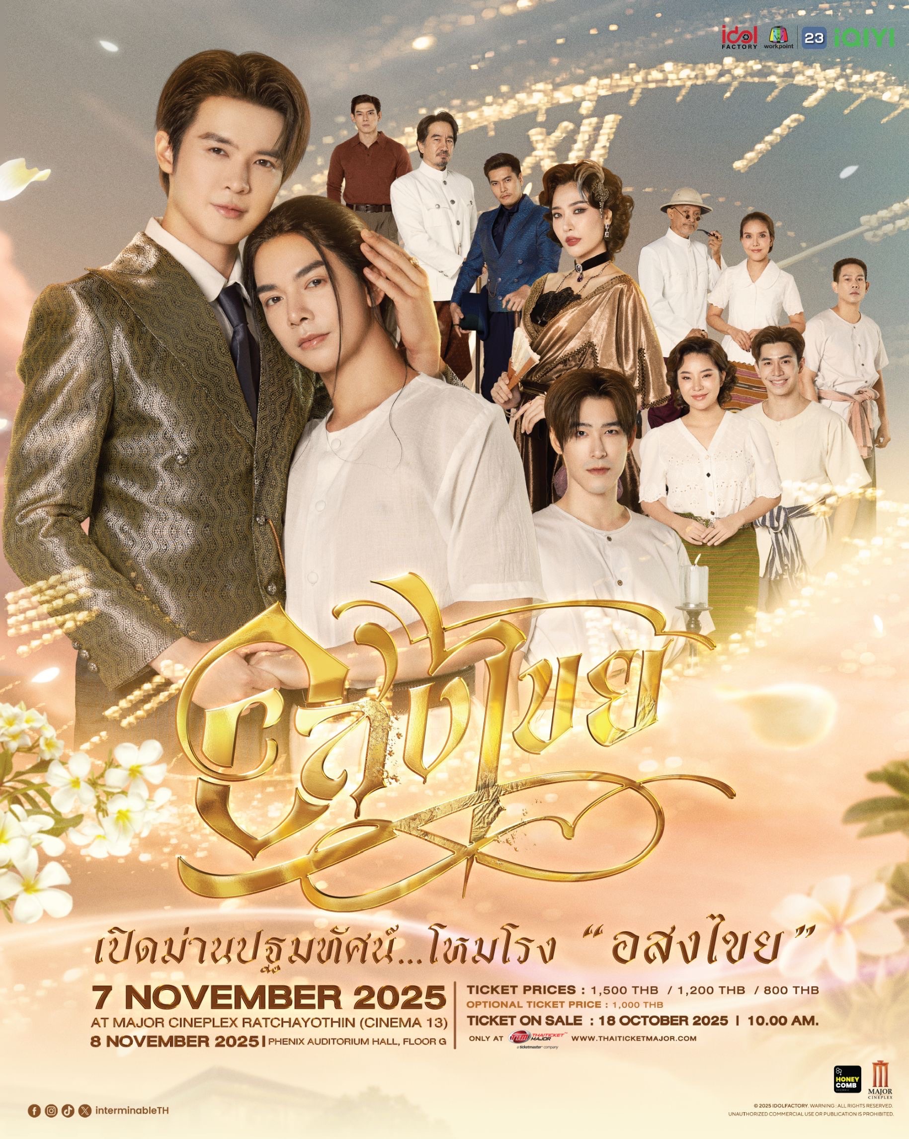 เมื่อวาระถูกลิขิต ปฐมบทแห่งอสงไขยได้ฤกษ์บรรเลง! ไอดอล แฟคทอรี่ (IDOL FACTORY) พร้อมต้อนรับทุกคนสู่งาน เปิดม่านปฐมทัศน์ โหมโรงซีรีส์ “อสงไขย Interminable” เชิญชวนแฟน ๆ ร่วมชมซีรีส์ตอนแรกพร้อมกัน ในวันที่ 7-8 พฤศจิกายนนี้ เตรียมใจละลายไปกับเคมีเกินต้านของคู่ฮอตแห่งปี “บิลลี่ ภัทรชนน อ่อนสอาด” ในบท “คุณใหญ่” และ “เบ้บ ธนทัต พรรณวิริยะกุล” ในบท “แก้วตา” เสริมด้วยทัพนักแสดงมากฝีมือทั้งรุ่นเล็กรุ่นใหญ่ ภายใต้ฝีมือการกำกับโดย “ใหม่ ภวัต พนังคศิริ” เจ้าพ่อละครพีเรียด ที่ยืนหนึ่งเรื่องการถ่ายทอดอารมณ์ได้อย่างละเมียดละไม