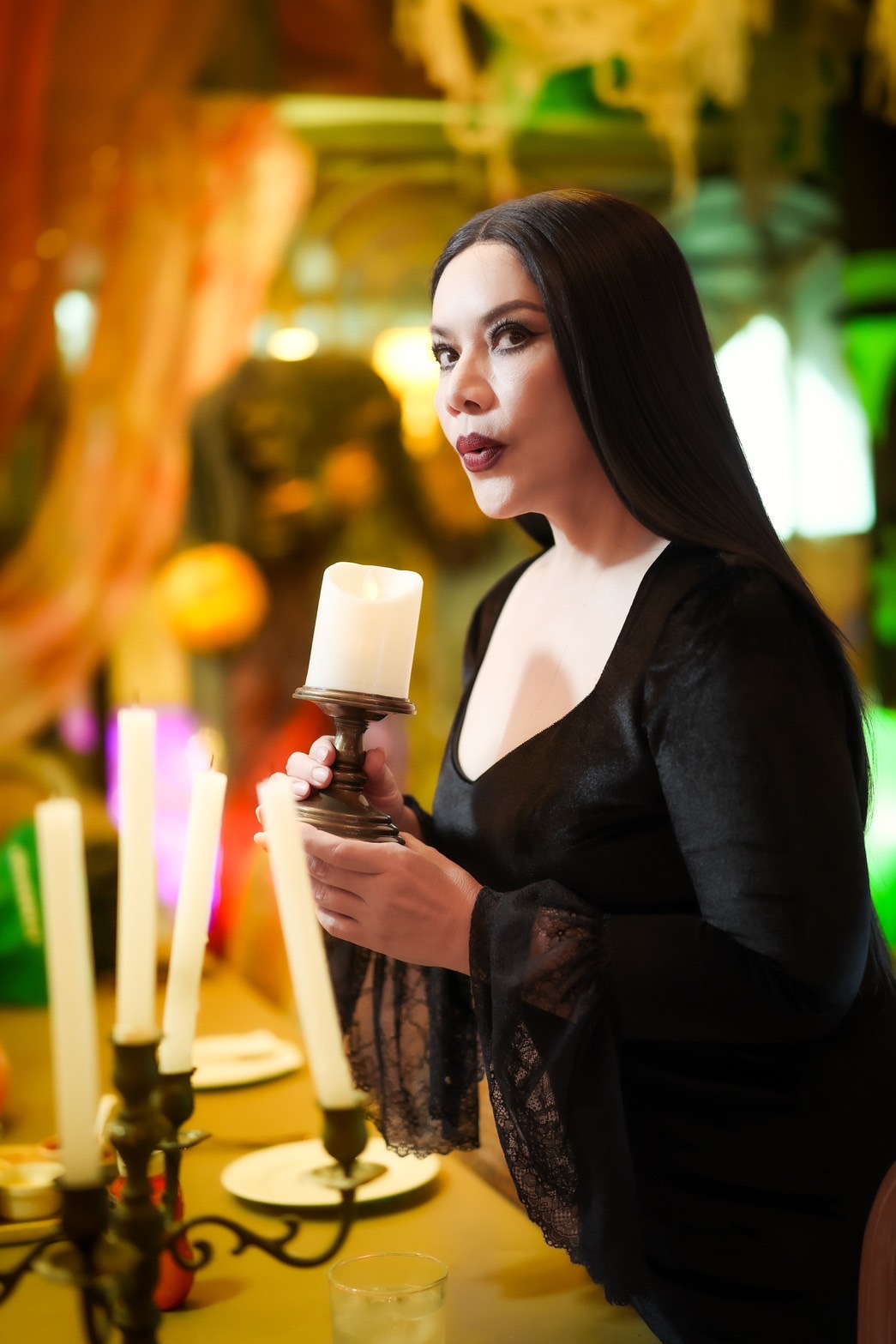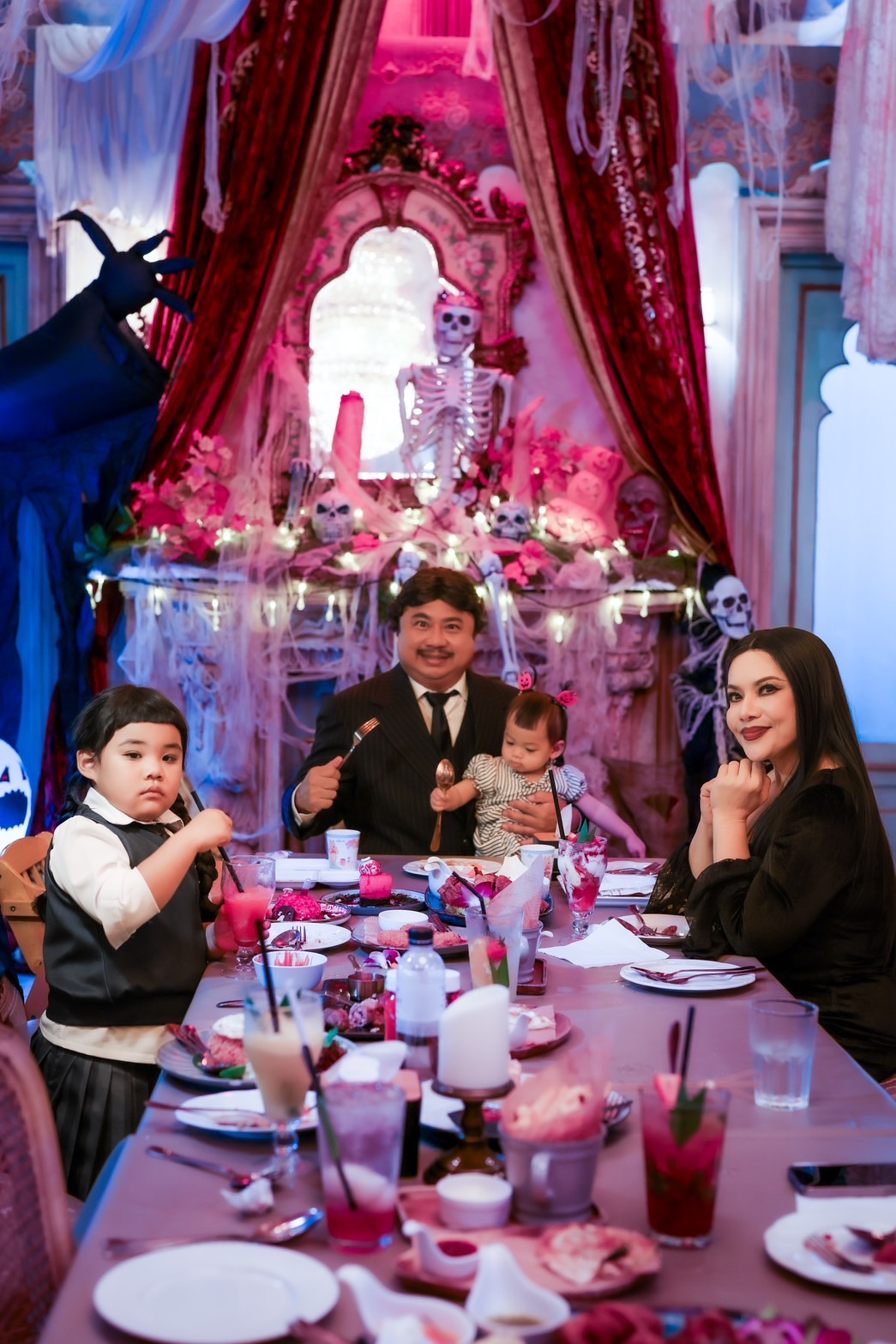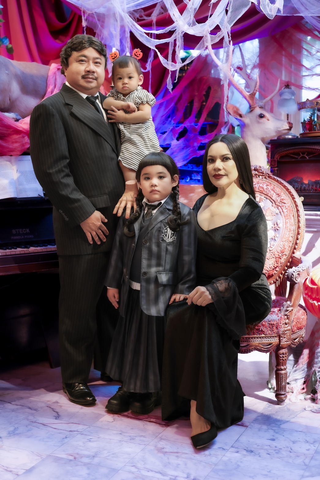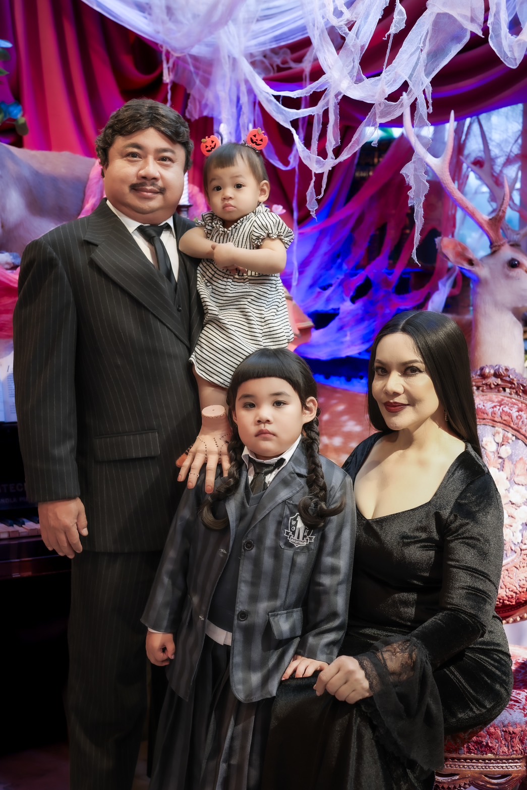 เต็มที่ทุกกิจกรรมให้คะแนนความน่ารักสิบเต็มสิบแบบไม่หักไปเลย เทศกาลฮาโลวีนปีนี้ ครอบครัวสุดหรรษา “พี่หนูแหม่ม-สุริวิภา” พิธีกรคนสวยยืนหนึ่งตลอดกาล ขอแปลงโฉมลุคผีอินเตอร์ แต่งองค์ทรงเครื่องเป็นตัวละคร The Addams Family หน้าส่งผม ผมส่งชุด ชุดส่งคน “พี่หนูแหม่ม” ฟาดอินเนอร์ผีสาวคนสวยได้แรงสุดๆ ด้านคุณสามีอารมณ์ดี “พี่บ๊อบบี้ โรเบิร์ต” ก็เป็นทุกอย่างให้คุนภรรยา เผยลุคน่ารักน่าหยิก เป็นผีสุดคลูดูแล้วต้องยิ้มตาม บวกกับความน่ารักตัวเท่าโลกของ “พี่แอลลี่” มาในตัวละครสุดอินเทรนด์ “Wednesday” ก็พร้อมปล้นใจแม่ยกไปตามระเบียบ