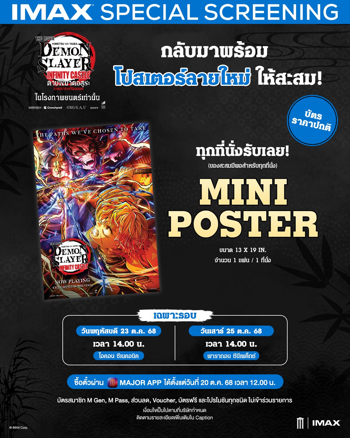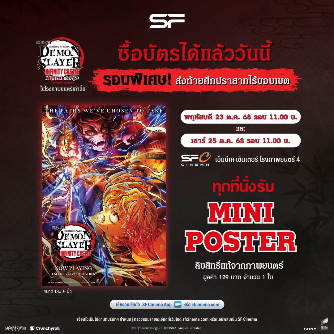 (เช็ครอบฉายและสาขาได้ที่แอพพลิเคชั่นของโรงภาพยนตร์)