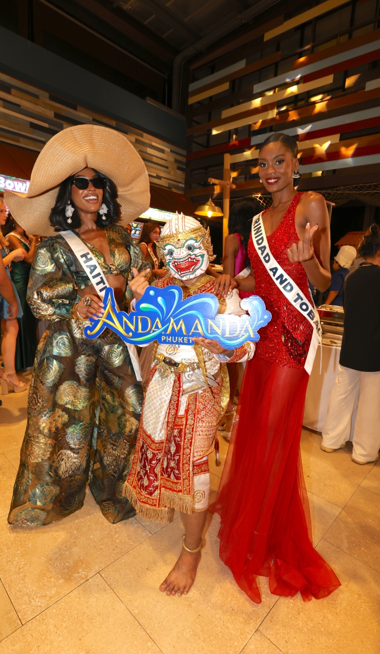 ช่วงค่ำร่วมดินเนอร์อาหารนานาชาติที่สวนน้ำสุดอลังการ อันดามันดา ภูเก็ต (Andamanda Phuket : TheGreat Water Kingdom) จัดไว้ต้อนรับ โดยมี คุณณวัฒน์ อิสรไกรศีล ประธานเจ้าหน้าที่บริหาร บริษัท มิสแกรนด์ อินเตอร์เนชั่นแนล จำกัด (มหาชน) รองประธานองค์กร Miss Universe Asiana และ ประธานคณะเจ้าภาพจัดการประกวด Miss Universe ครั้งที่ 74 ประเทศไทย , คุณธีระศักดิ์ ผลงาม คุณธนพัฒน์ นวลสกุล ผู้สนับสนุนหลักจังหวัดภูเก็ต , คุณนฐา ชมเสวี (Mr.Natha Jamasevi) ผู้จัดการทั่วไป อันดามันดา ภูเก็ต และ คุณมุจจรินทร์ น้ำคำภา (Ms.Mutjarin Namkhampa) ผู้อำนวยการฝ่ายขาย อันดามันดา ภูเก็ต คุณวัชรพงษ์ ขลังธรรมเนียม (Mr.Vatcharapong Klangtumnium) ผู้อำนวยการกลุ่มงานการตลาด อันดามันดา ภูเก็ต พร้อมมื้อพิเศษและมอบของที่ระลึก Turtle Wish Band โดยกลุ่มวิสาหกิจชุมชนบ้านไม้ขาว และ ผ้ามัดย้อมสีธรรมชาติ โดย Wanna Nature Dyed Studio นางงามตื่นตากับโชว์ Guardians Of Andamanda การแสดงสุดพิเศษที่หลอมรวมนาฏศิลป์โขน ผสานความแข็งแกร่งแห่งมวยคาดเชือก ตำนานนักสู้แห่งสยาม สร้างความประทับใจให้ผู้มาเยือนได้ไม่รู้ลืม