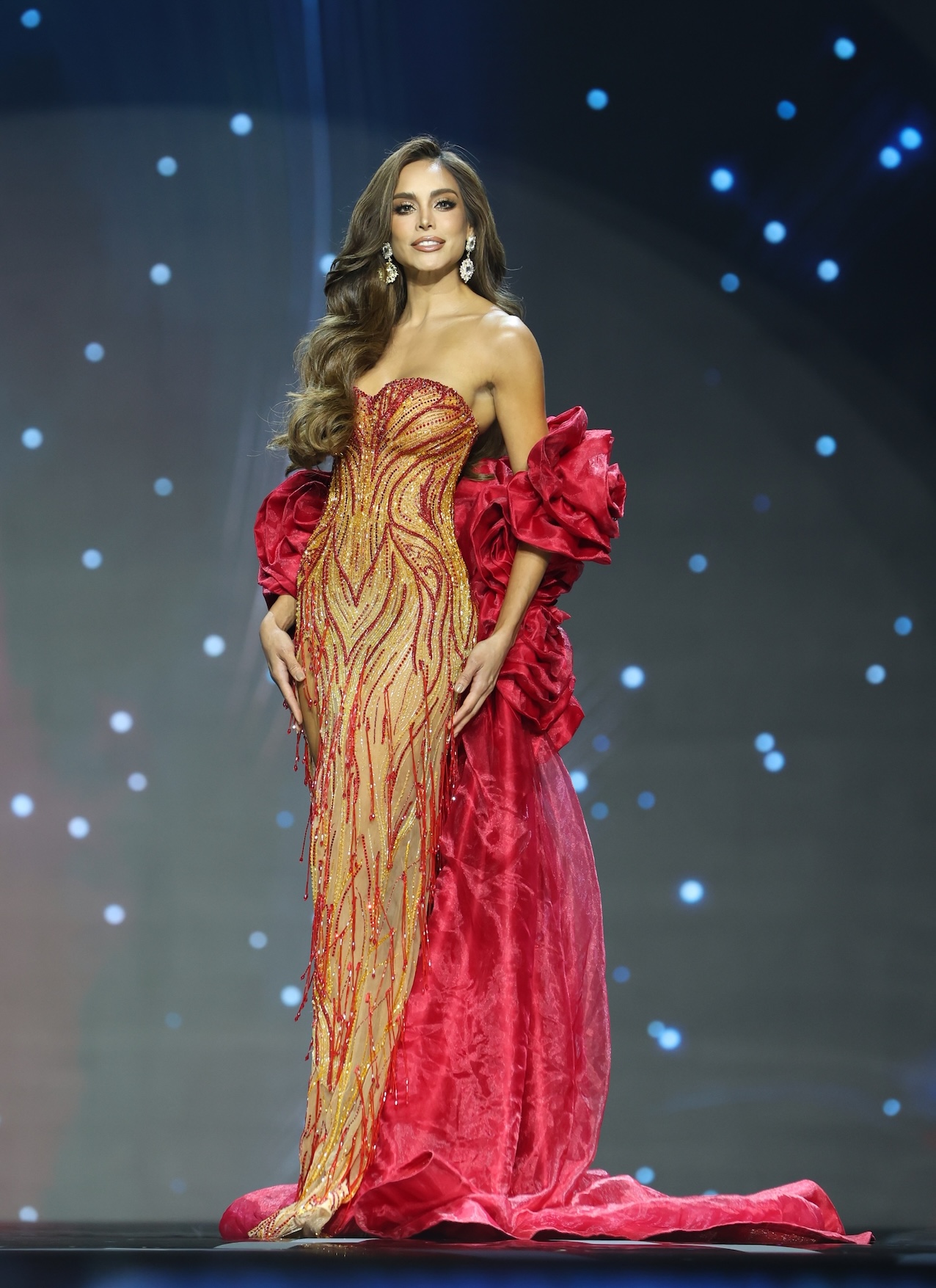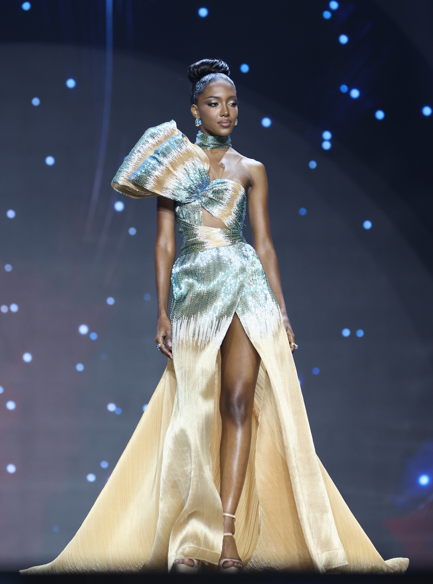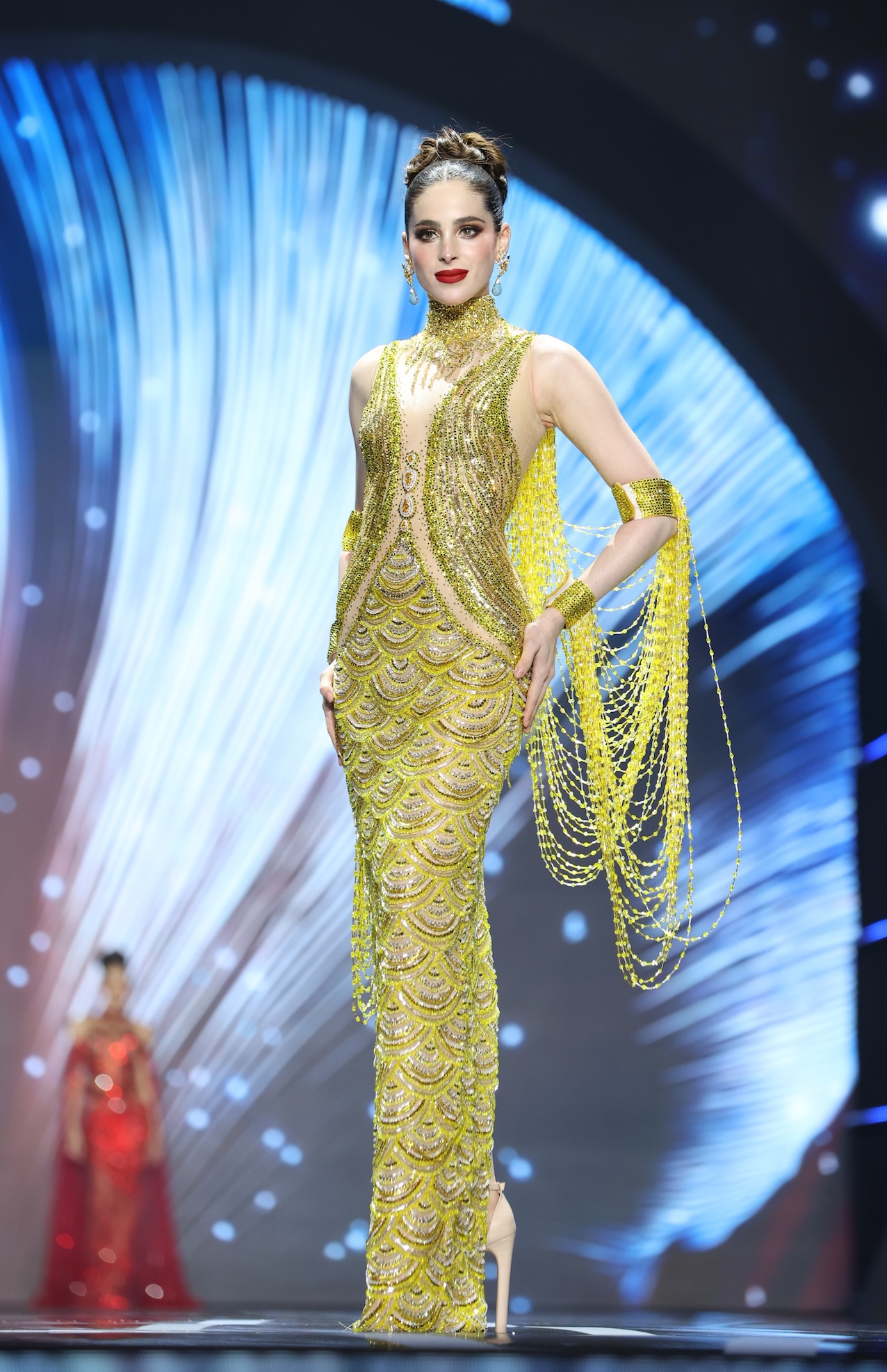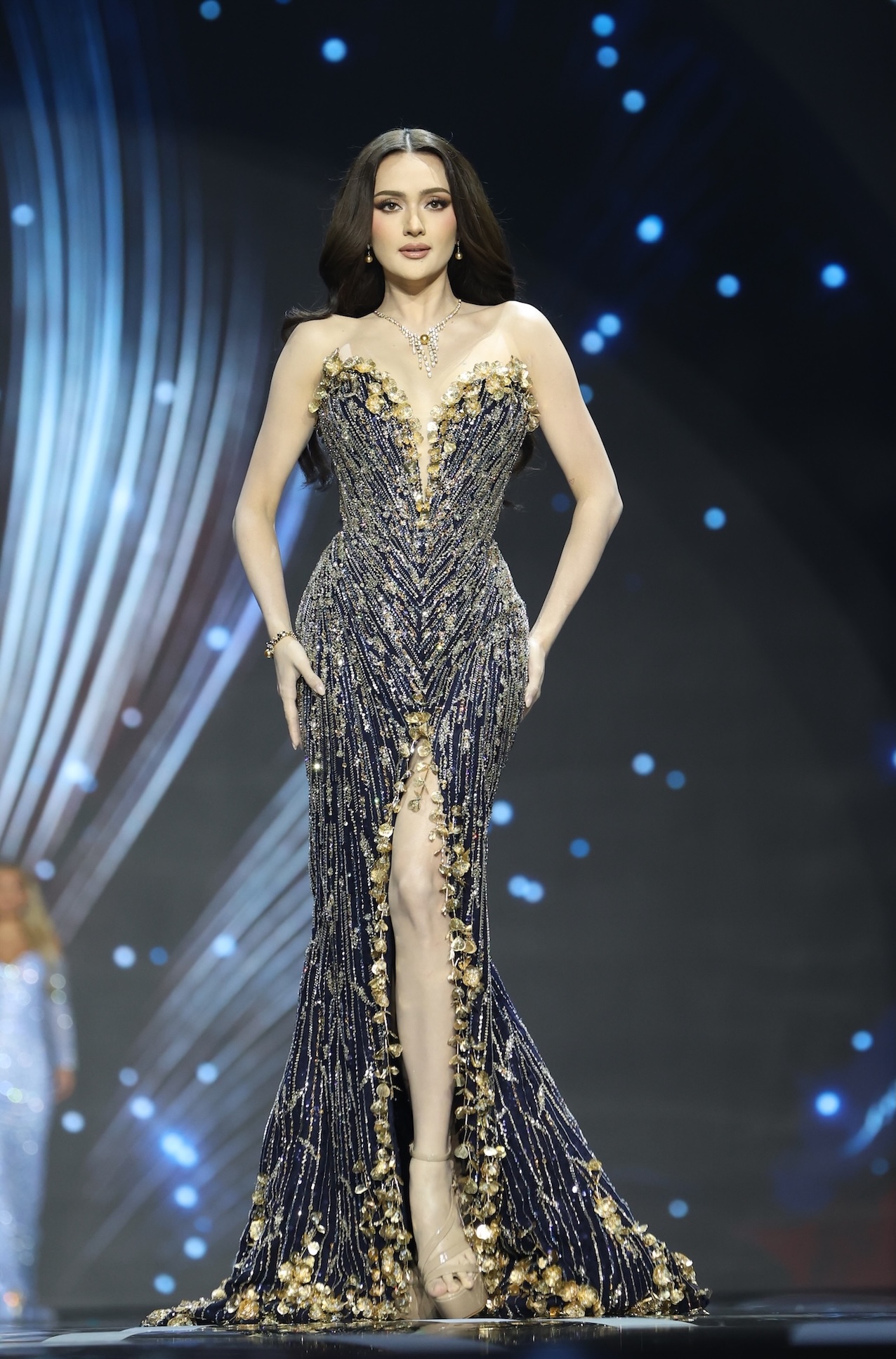 โดยในรอบชุดว่ายน้ำ (Swimsuit Competition) ผู้เข้าประกวดต่างโชว์ความมั่นใจ และเสน่ห์เฉพาะตัว ผ่านจังหวะการเดิน และการโพส ที่แข็งแรง สง่างาม เรียกเสียงปรบมือจากผู้ชมตลอดการแสดง ส่วนในรอบชุดราตรี (Evening Gown Competition) สาวงามแต่ละประเทศปรากฏตัวในชุดราตรีดีไซน์พิเศษที่ถูกสร้างสรรค์โดยดีไซเนอร์ชื่อดัง ถ่ายทอดเสน่ห์ ความหรูหรา และเอกลักษณ์ของตนเองได้อย่างลงตัว จนทำเอาแฟนๆ ที่รับชมในฮอลล์ ปรบมือ และส่งเสียงเชียร์ไม่ขาดสาย ด้านตัวแทนสาวไทย “วีนา ปวีนา ซิงค์” ทำผลงานโดดเด่นทั้งสองรอบ ด้วยบุคลิกมั่นใจและการนำเสนอที่มีพลัง ทำให้บรรยากาศในฮอลล์เต็มไปด้วยเสียงเชียร์จากแฟน ๆ ชาวไทยและต่างชาติอย่างล้นหลาม