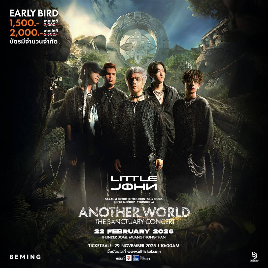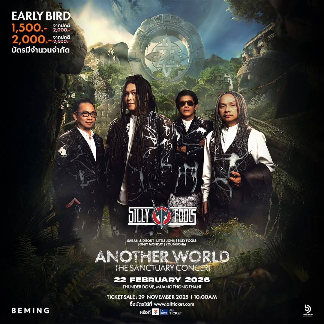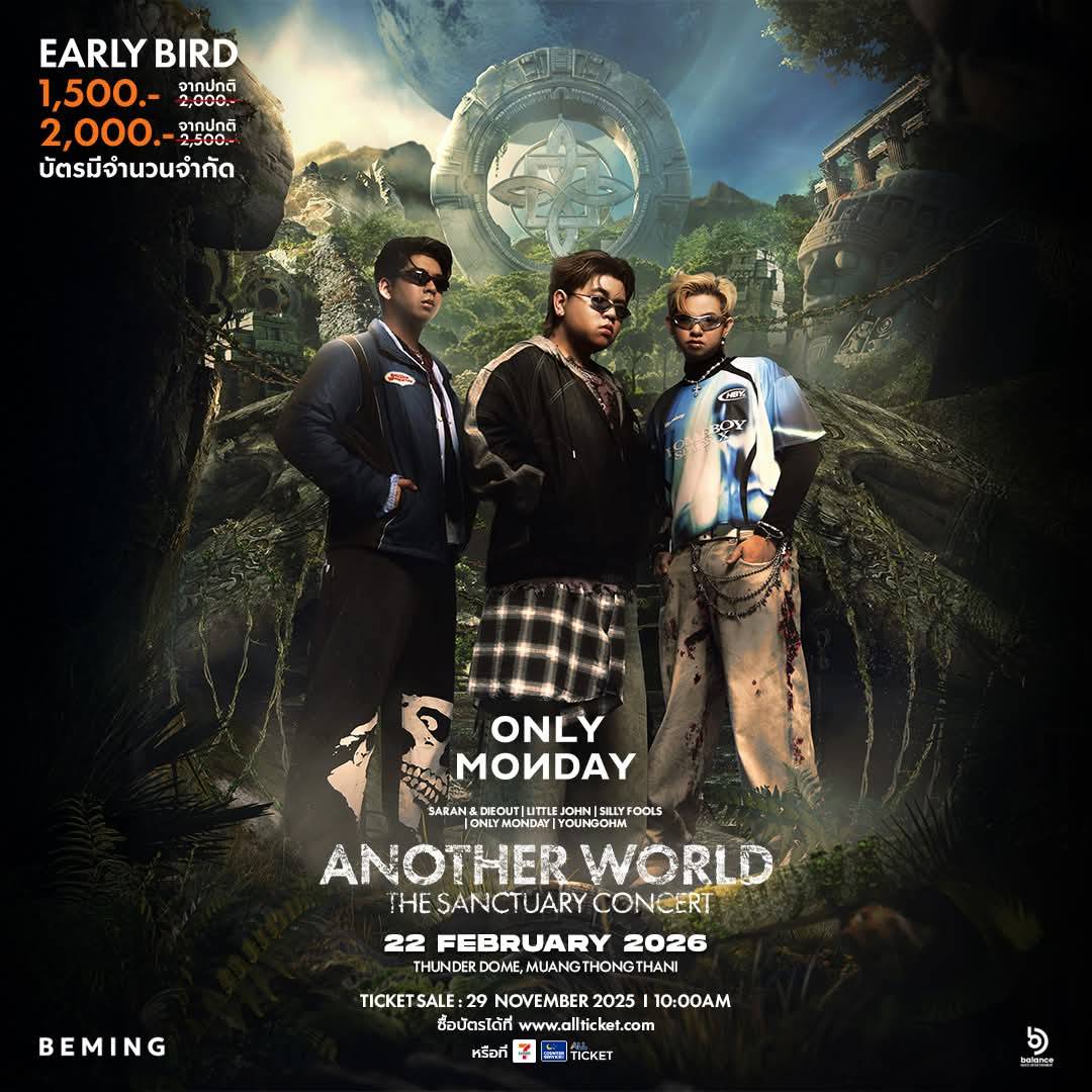 ANOTHER WORLD: THE SANCTUARY CONCERT 2026 งานที่ทุกคนรอคอยกลับมาแล้วในรูปแบบที่ยิ่งใหญ่กว่าเดิม พร้อมโปรดักชันจัดเต็มระดับเทศกาลดนตรี ในวันอาทิตย์ที่ 22 กุมภาพันธ์ 2026 ณ Thunder Dome เมืองทองธานี เปิดขายบัตร Early Bird วันเสาร์ที่ 29 พฤศจิกายน 2568 นี้ ตั้งแต่ 10.00 น. เป็นต้นไป ทาง ALLTICKET และ Counter Service All Ticket ที่ร้าน 7-Eleven ทุกสาขา โดยบัตรแบ่งออกเป็น 4 โซน ได้แก่