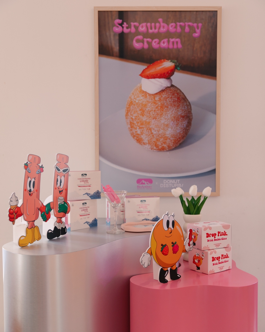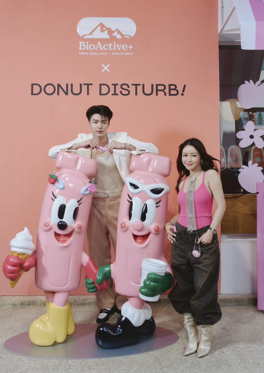 โดยครั้งนี้ คุณเมย์ – ดร. วาสนา อินทะแสง – Founder of BioActive Thailand ได้แปลงโฉมคาเฟ่ Donut Disturb ให้กลายเป็นโลกสีชมพูสุดสดใส ไปกับคาแรกเตอร์ตัวละครใหม่ “น้อง Double Gluta & Donut พร้อมผองเพื่อน” ที่ออกแบบขึ้นโดยศิลปินสุดแนว FARTBOIL – คุณ ศิวกร พิมพ์สกุลา นนท์ ด้วยคอนเซ็ป Double Delicious พร้อมเปิดตัวเมนูคอลแลปพิเศษ ที่ผสมผสาน ความอร่อยของโดนัท และ ความออร่าจาก Gluta Drink อย่างลงตัว โดยมี คุณ ณรงค์ฤทธิ์ ศรีตลานนท์ และ เฉลิมพล อัครภิญโญกุล – Founder of Donut Disturb ได้รังสรรค์ เมนูโดนัท และเครื่องดื่มที่ได้แรงบัลดาลใจมาจาก “Gluta Drop Drink” เพิ่มความอร่อย และได้ผิวออร่า เมนูโดนัท Hokkaido Milk & BioActive, Strawberry Cream, และ Lychee Jam และเสริมด้วยเครื่องดื่มสำหรับผู้ชื่นชอบมัชชะ Clear Matcha & BioActive Jelly และ Strawberry Matcha Latte เรียกว่าแคมเปญนี้ คือการส่งต่อพลังความออร่า และสุขภาพดีจากภายในสู่ภายนอกอย่างแท้จริง ภายในงานวันเปิดแคมเปญวันแรก ยังมี สองนักแสดง แม็กกี้ – รชต พิเชฐโชติ ,เซฟ ไซสวัสดิ์ ,ศิลปิน วง CIR*CRL อย่าง แซม พฤติชัย รวยฟูพันธ์ และ เบ็น ภัทรกิจ ตั้งมงคลกิจการ และสาวสวย ยี่หวา – ปรียากานต์ ใจกันทะ และ เบนซ์ – ข้าวขวัญ มาร่วมเช็คอินความคิวท์ภายในงานอีกด้วย