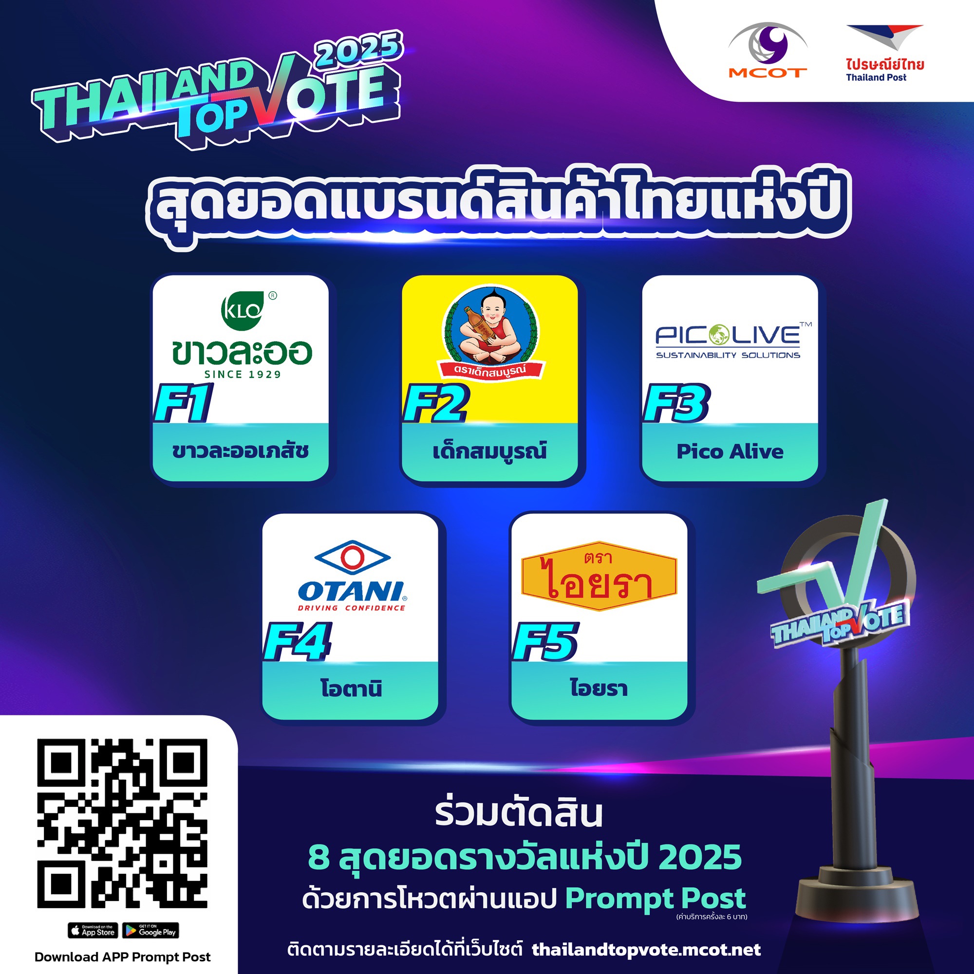 พร้อมเปิดโผ เปิดโหวต 8 สาขารางวัล TOP 5 ของประเทศ “Thailand Top Vote 2025”