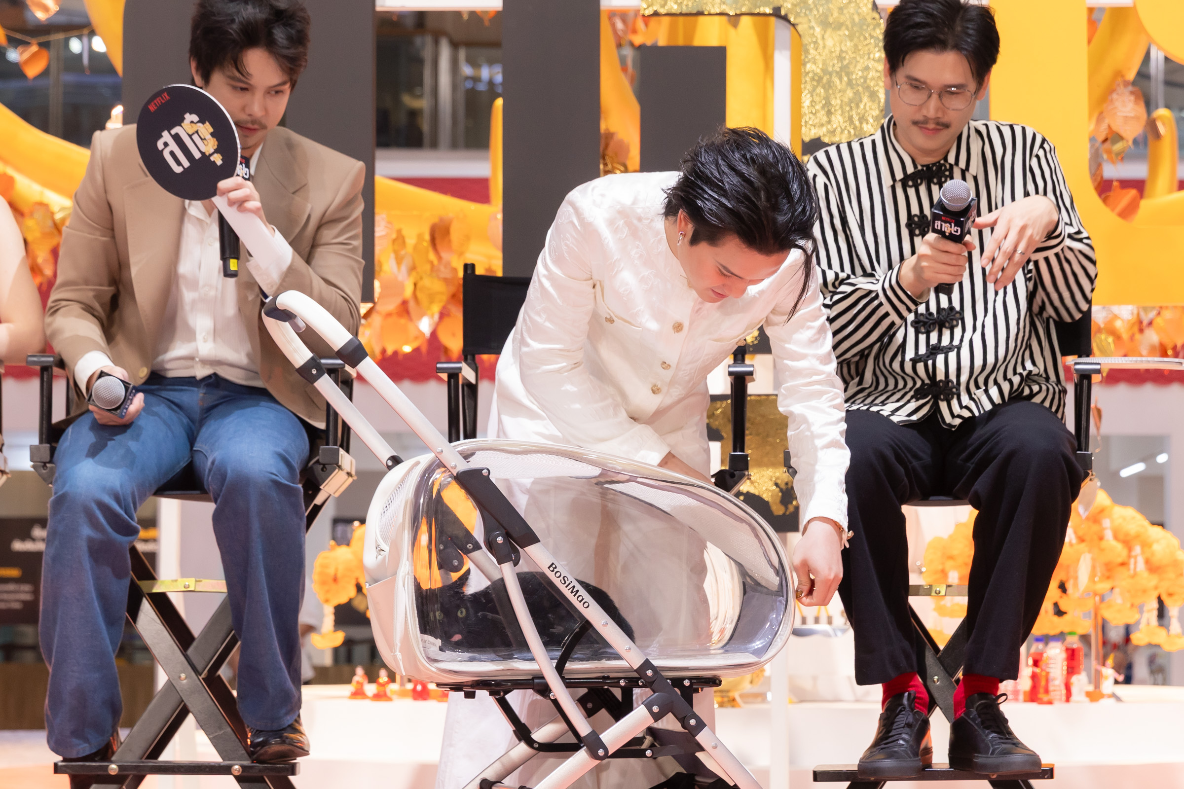 ภายในงานแถลงข่าว Netflix ได้เนรมิตลานซีคอนสแควร์ ฮอลล์ ให้กลายเป็น “สาธุแฟร์” งานมหาบุญกุศลสุดอลังการ พร้อมต้นโพธิ์ยักษ์ซึ่งถอดแบบมาจากเมกะโปรเจกต์บุญในซีรีส์ตั้งตระหง่านอยู่ตรงใจกลาง เปิดโอกาสให้สาธุชนเติมพลังบุญกับกิจกรรมมากมาย ทั้งการลอดท้องเสือสะเดาะเคราะห์ต่อชะตา มุมขอพรด้านการงาน การเงิน และความรัก พร้อมรับใบโพธิ์อธิษฐานส่งตรงจากวัดหนองขาล เพื่อเขียนคำอธิษฐานแล้วไปแขวนบนต้นโพธิ์ยักษ์กลางลาน