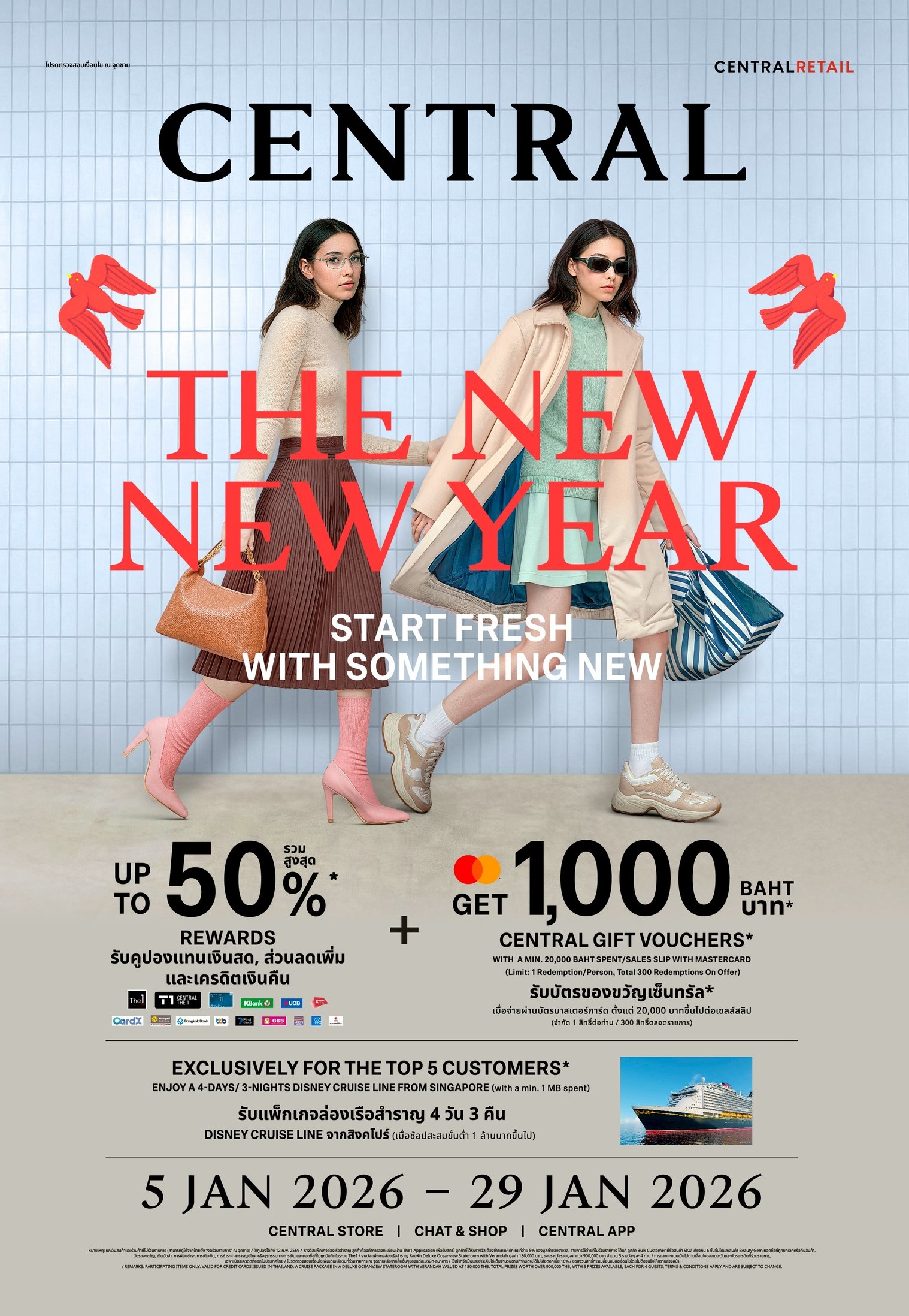 ห้างสรรพสินค้าเซ็นทรัล ในเครือเซ็นทรัล รีเทล จับมือ ลูกค้าคนสำคัญทั่วประเทศ เดินหน้าก้าวสู่ช่วงเวลาแห่งความสุขต้อนรับปีใหม่ปีม้า 2569 ส่งมอบประสบการณ์เหนือระดับอย่างต่อเนื่อง ทั้งช้อปปิ้ง การบริการ และอีเวนต์ใหญ่ตลอดทั้งปี สานต่อวิสัยทัศน์ห้างแห่งแรงบันดาลใจ จุดหมายปลายทางแห่งการช้อปปิ้งที่เป็นศูนย์กลางไลฟ์สไตล์ที่นักช้อปทั้งไทยและต่างชาติไว้วางใจ ประเดิมเปิดแคมเปญแรกของปีอย่างยิ่งใหญ่กับแคมเปญ “CENTRAL THE NEW NEW YEAR” – START FRESH WITH SOMETHING NEW เริ่มต้นความสดใสตลอดทั้งปีด้วยสินค้าทุกหมวดจากแบรนด์ชั้นนำที่คัดสรรอย่างดีเพื่อตอบโจทย์นักช้อปทุกสไตล์ พร้อมดีลพิเศษลดสูงสุดกว่า 30% ตั้งแต่วันที่ 5 มกราคม 2569 – วันที่ 29 มกราคม 2569 รวมถึงโปรโมชั่นเพื่อสายบิวตี้โดยเฉพาะกับ “CENTRAL BEAUTY THE NEW NEW GLOW” เอ็กซ์คลูซีฟดีลจากแบรนด์บิวตี้ชั้นนำ พิเศษ! ลูกค้าที่มียอดช้อปสูงสุด รับแพ็คเกจที่พักสุดหรู คลับเมด คานิ มัลดีฟส์ 3 วัน 2 คืน ห้อง Overwater Suite มูลค่า 120,000 บาท พร้อมของสมนาคุณอีกมากมาย นอกจากนี้ ยังมีดีลพิเศษเพื่อคนรักบ้าน กับ “CENTRAL THE NEW NEW HOME” ที่จัดเต็มสินค้าเครื่องใช้ไฟฟ้า เครื่องครัว เครื่องนอน และสินค้าเกี่ยวกับบ้านจากทุกแบรนด์ดัง ระหว่างวันที่ 18 มกราคม – 24 กุมภาพันธ์ 2569 ช้อปสนุกทุกแคมเปญที่ห้างเซ็นทรัลทุกสาขา, Central App และทุกช่องทางช้อปปิ้ง