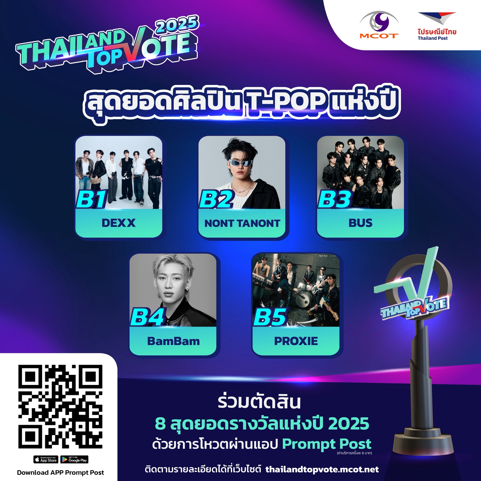 เอ็นดูใครสุดหัวใจ โหวตเลย กับ “สุดยอดศิลปิน T- POP แห่งปี” “Thailand Top Vote 2025”