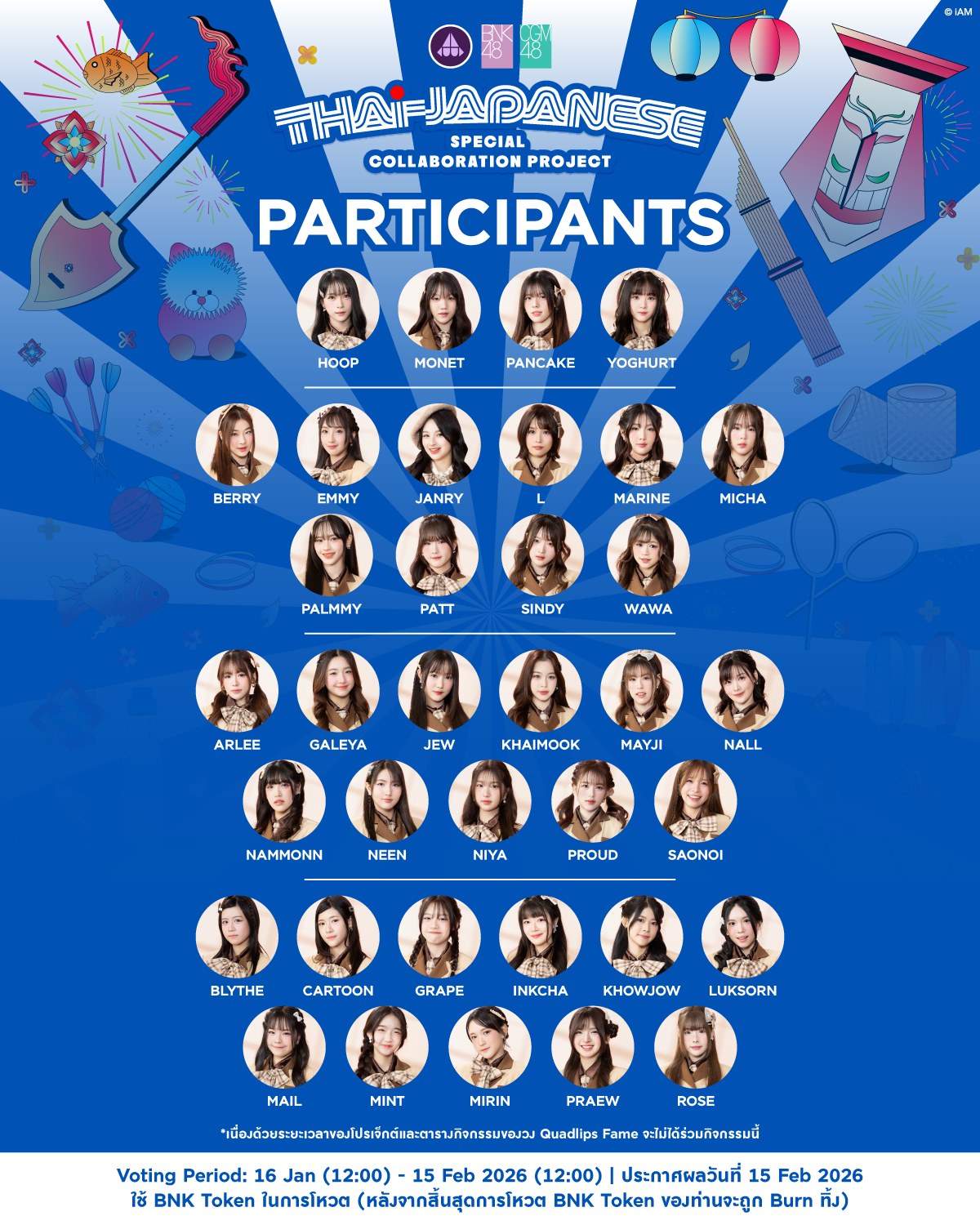 โดยกิจกรรม Thai-Japanese Special Collaboration Project แฟนๆ สามารถร่วมคัดเลือก 8 สมาชิกจาก BNK48 & CGM48 ตั้งแต่วันนี้ถึงวันที่ 15 กุมภาพันธ์ 2569