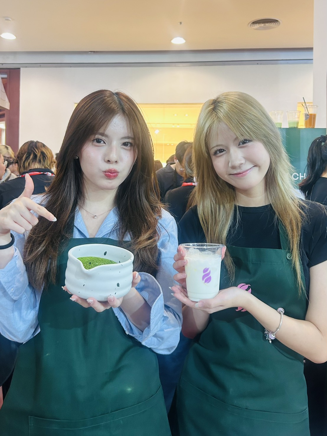 เพลิน “หนูชอบกินมัทฉะมาก กินทุกวันเลย วันนี้ได้กินเป็นแก้วที่สองแล้วได้มาเสิร์ฟให้แฟนๆ สนุกมาก แฟนคลับบอกว่าอร่อยมาก ปกติหนูจะกินอย่างเดียวไม่ได้ทำ แต่วันนี้ได้มาทำด้วยชอบมาก จริงๆ ที่บ้านหนูมีที่ทำมัทฉะนะคะ แต่ได้มาชิมมัทฉะลาเต้ที่นี่รู้สึกว่าที่นี่ทำอร่อยกว่า มีกลิ่นหอมมัทฉะมาก เข้มข้นมาก นัวมากอร่อยแบบลงตัวอยากให้ทุกคนมาลองดูนะคะ”