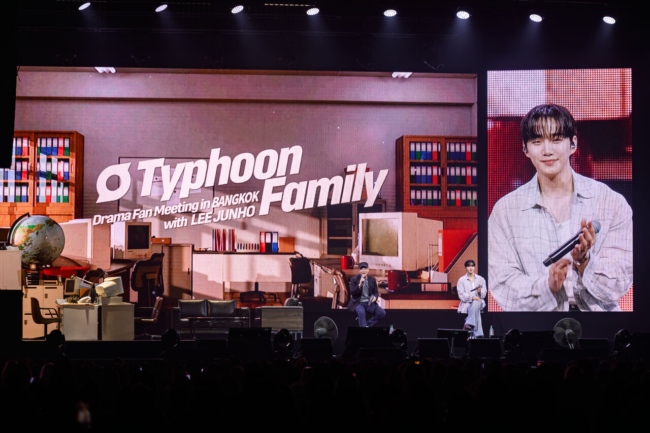 จากนั้นเข้าสู่ช่วงสัมภาษณ์เบื้องหลังการถ่ายทำซีรีส์ “Typhoon Family” ที่อีจุนโฮได้เล่าถึงความประทับใจ พร้อมเผยโมเมนต์การทำงานสุดทุ่มเท โดยเฉพาะ ซีนไวรัลขับรถตุ๊กตุ๊ก ที่เจ้าตัวได้ลงมือขับเองแบบไม่มีสแตนด์อิน เพื่อถ่ายทอดอารมณ์ของตัวละครให้สมจริงที่สุด นอกจากนี้ เขายังเผยถึงเครื่องดื่มไทยสุดโปรด พร้อมยกให้ “แตงโมปั่น” และ “ชาไทย” ขึ้นแท่นเมนู No.1 ทุกครั้งที่มาเยือน เรียกเสียงกรี๊ดจากแฟน ๆ ได้อย่างล้นหลาม ก่อนจะเข้าสู่ช่วงกิจกรรมสุดพิเศษที่แฟน ๆ รอคอย กับโมเมนต์ละลายหัวใจ เมื่ออีจุนโฮบอกรักแฟน ๆ ด้วยภาษาไทยอย่าง “ผมรักคุณ”, “รักนะ” และ “รักนะเตง” ทำเอาแฟนคลับชาวไทยเคลิ้มไปกับความน่ารักและความเอ็นดู ครองหัวใจแฟน ๆ ไปแบบเต็ม ๆ