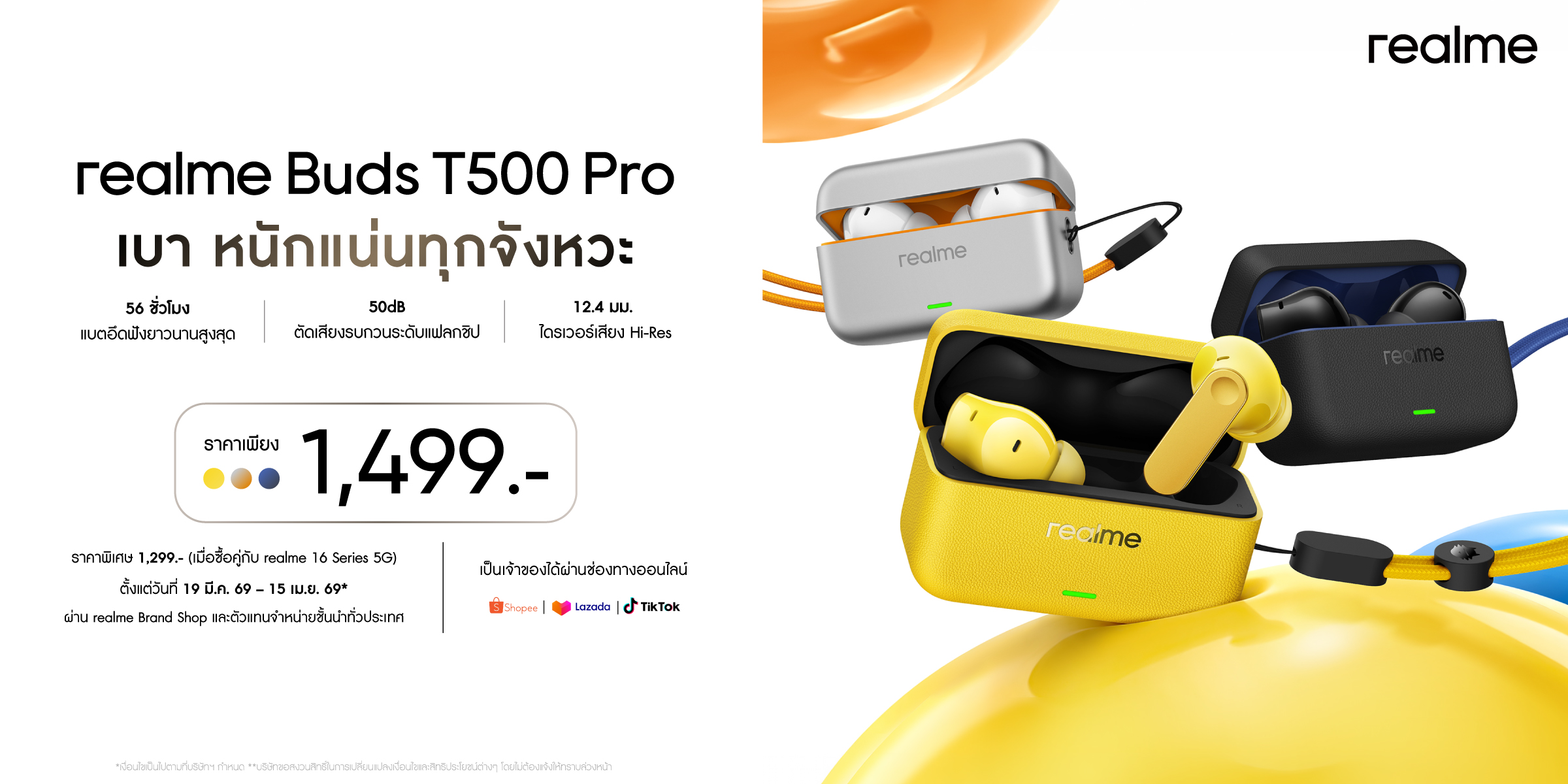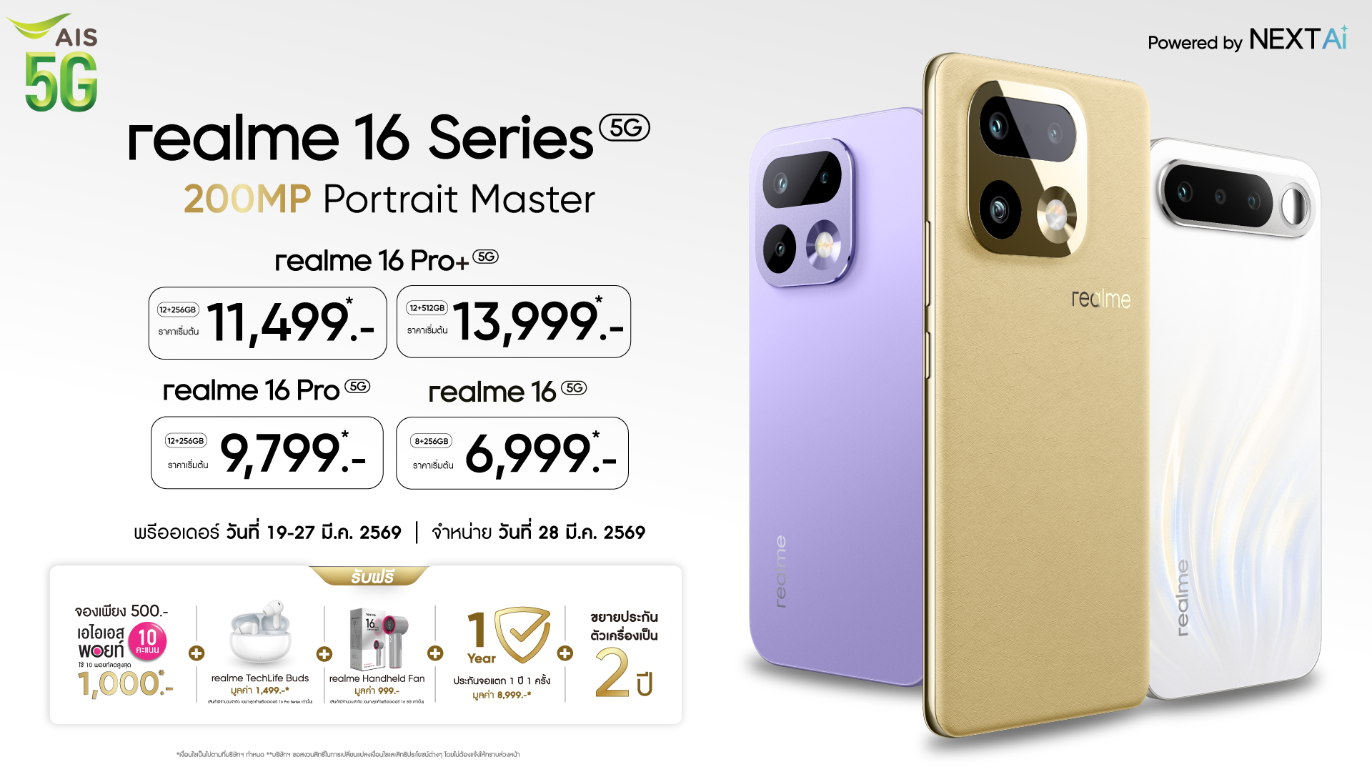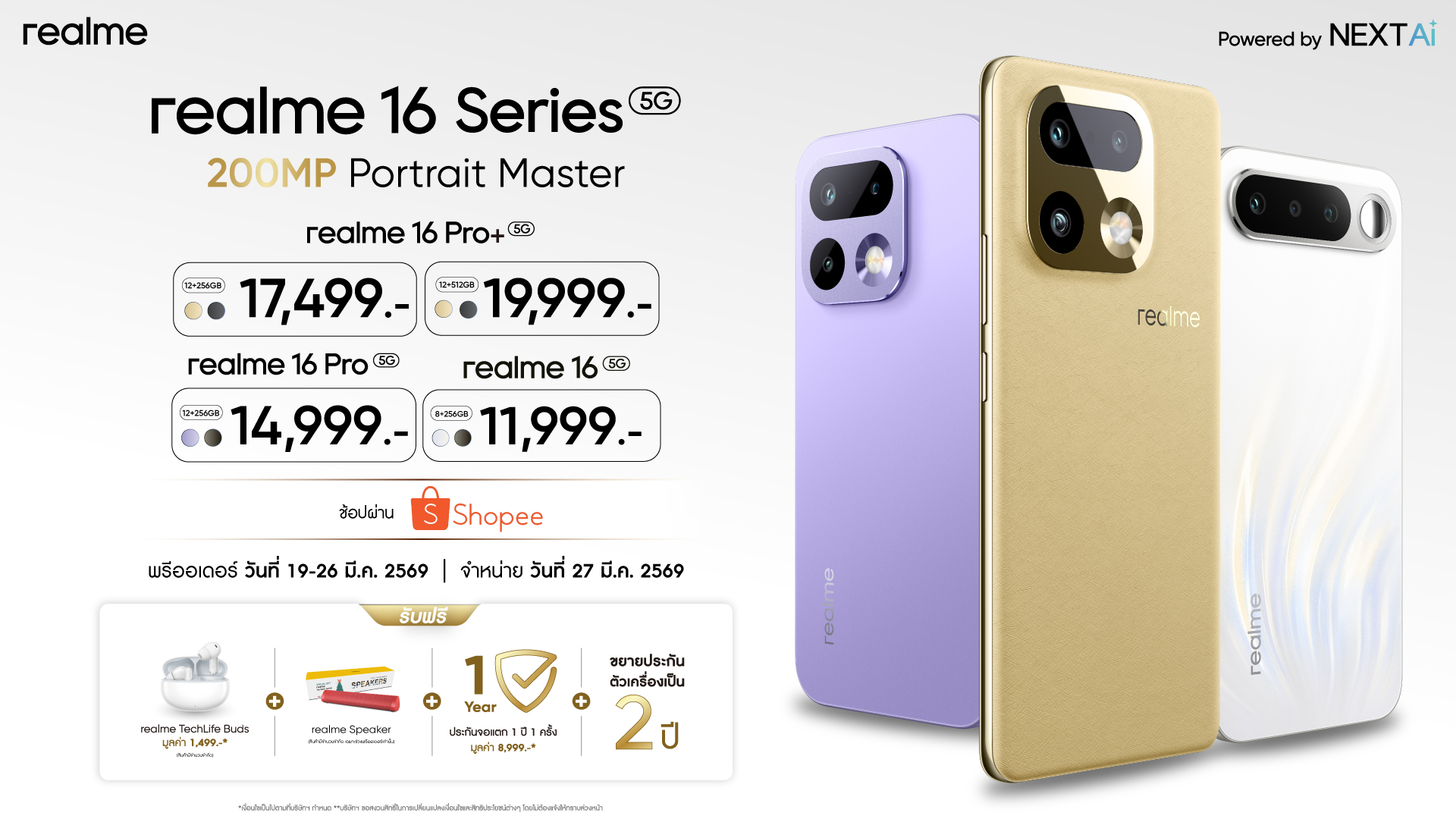 อย่าช้า! รีบไปสัมผัสและ “วินในทุกช็อต” กับ “realme 16 Series 5G” ได้แล้ววันนี้ ที่ realme Brand Shop และตัวแทนจำหน่ายทั่วประเทศ รวมถึงช่องทางออนไลน์ พร้อมโปรโมชันจัดเต็มสำหรับแฟน ๆ ที่ห้ามพลาด!