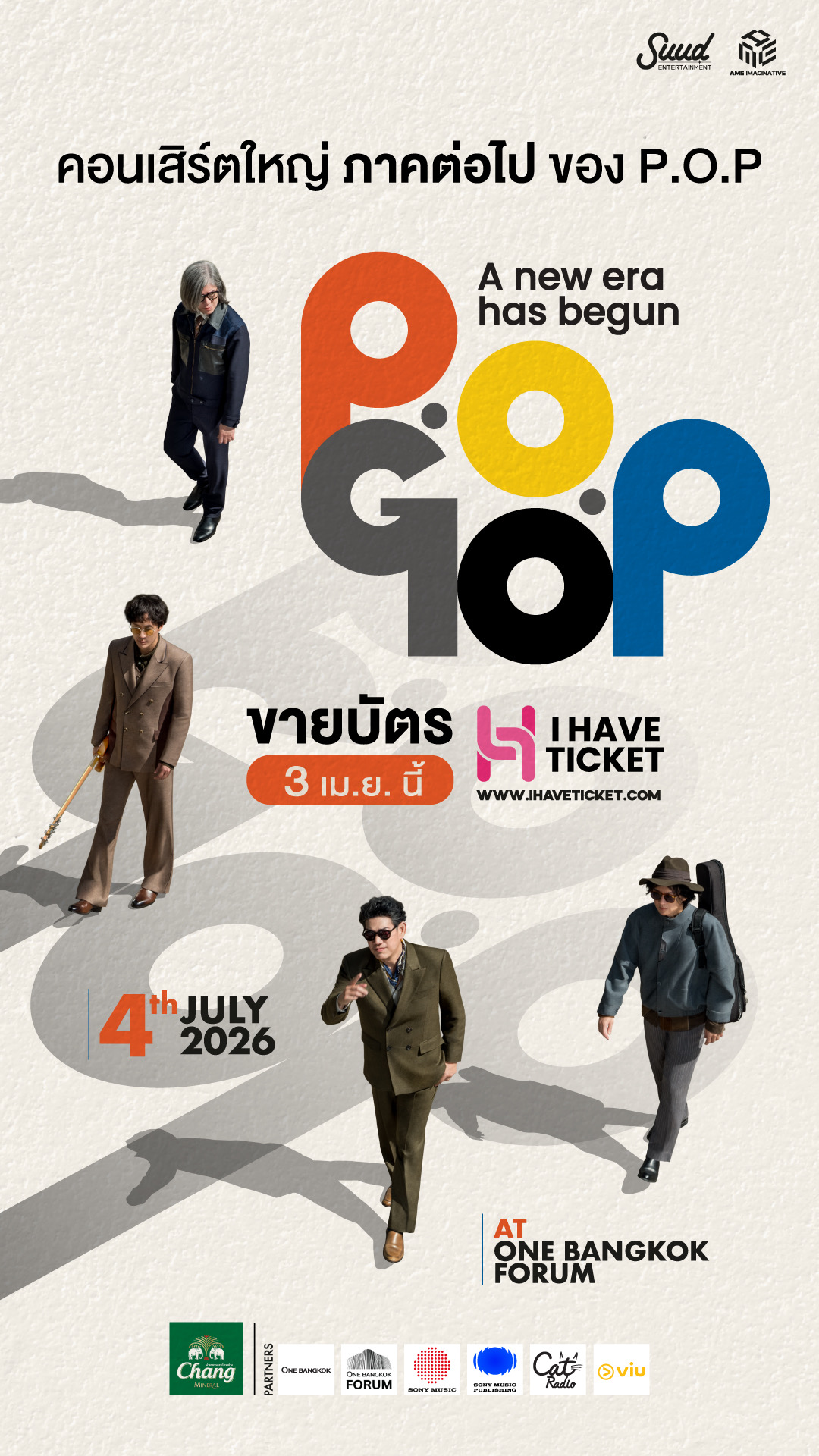 คอนเสิร์ต “P.O.P GO Concert : A New Era Has Begun” ในปี 2026 นี้ จะเผยให้เห็นการเคลื่อนไปข้างหน้ากับเส้นทางและเสียงดนตรีที่ยังไม่เคยถูกเล่าที่ไหนมาก่อน เตรียมตัวให้พร้อมร่วมออกเดินทางสู่แนวทางใหม่ ดนตรีใหม่ และผลงานชุดใหม่ ในรูปแบบของ P.O.P แล้วมาร่วมเขียนบันทึกหน้าใหม่ไปพร้อมกัน!
