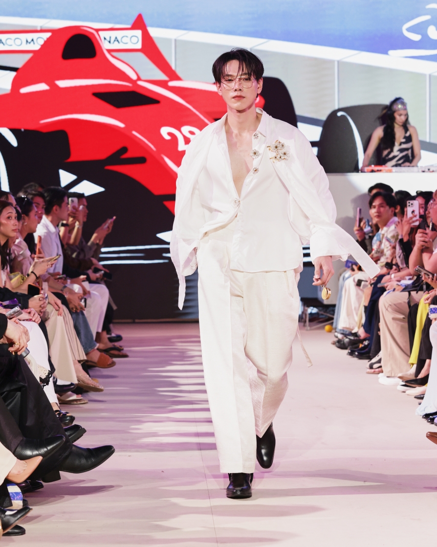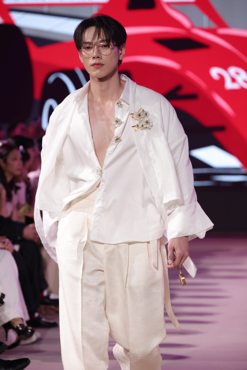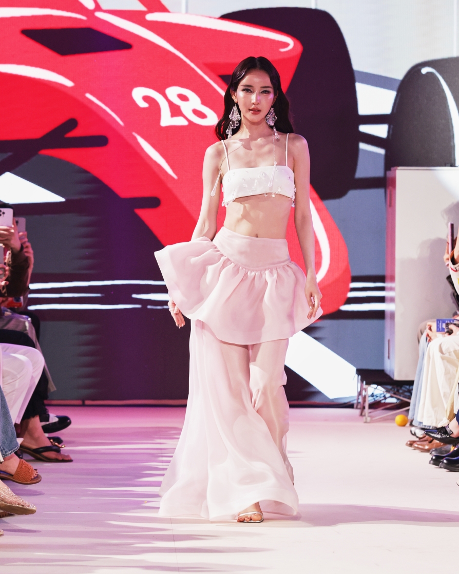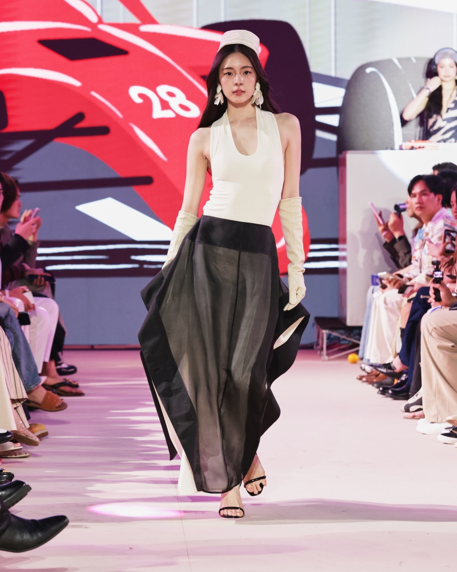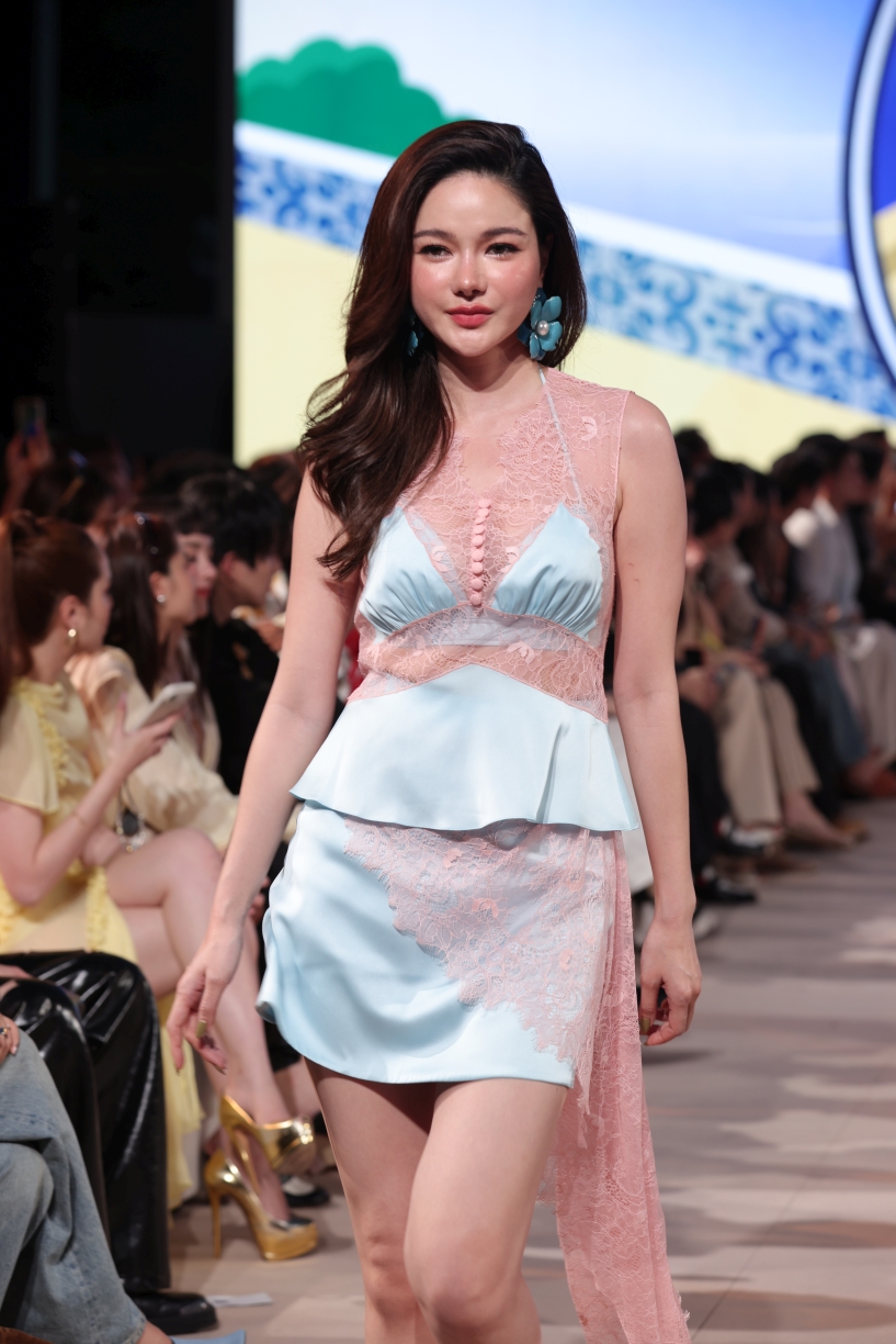 ไฮไลต์ของค่ำคืนนี้อยู่ที่แฟชั่นโชว์ภายใต้คอนเซปต์ “Mediterranean Summer Sundown” ซึ่งเนรมิตรันเวย์ให้เปล่งประกายราวกับค่ำคืนฤดูร้อนริมทะเลเมดิเตอร์เรเนียน ถ่ายทอดเสน่ห์ของปาร์ตี้ยามเย็นที่ทั้งหรูหรา เซ็กซี่ และเปี่ยมด้วยชีวิตชีวา ผ่านดีไซน์ที่โดดเด่นด้วยผ้าเนื้อละเอียด เท็กซ์เจอร์แวววาว และซิลูเอตที่ขับความมั่นใจของผู้สวมใส่ รวมผลงานจากดีไซเนอร์ไทยชั้นนำถึง 15 แบรนด์ กว่า 75 ลุค ได้แก่ Angelys Balek, ANURUQ, Heidi’s Secret, Hook’s by Prapakas, IRADA, ISSUE, LA BOUTIQUE, Milin, NICHp, SARRAN, Silhouette, TEEMA RUCKSAJIT, Vinn Patararin, Voranida และ WISHARAWISH โดยมีเหล่าคนดังมาร่วมถ่ายทอดลุคสุดร้อนแรงบนรันเวย์ ไม่ว่าจะเป็น มิว–ศุภศิษฏ์ จงชีวีวัฒน์, โยชิ–รินรดา ธุระพันธ์, ต้าห์อู๋–พิทยา แซ่ฉั่ว, ออฟโรด–กันตภณ จินดาทวีผล, เอินเอิน–ฟาติมา เดชะวลีกุล, ชาร์เลท–วาศิตา แฮเมเนา, พริกขิง–สุรีย์ญะเรศ ยะคะเรศ, เอม–สรรเพชญ์ คุณากร, น้ำมนต์–กฤตนัย อาสาฬห์ประกิต, นินน่า–ญาณิน โอภาสสถาวร, เจ้าหญิง–ครองขวัญ นาครทรรพ ฯลฯ ที่มาร่วมสร้างโมเมนต์สุดตื่นตาตื่นใจให้รันเวย์ลุกเป็นไฟ