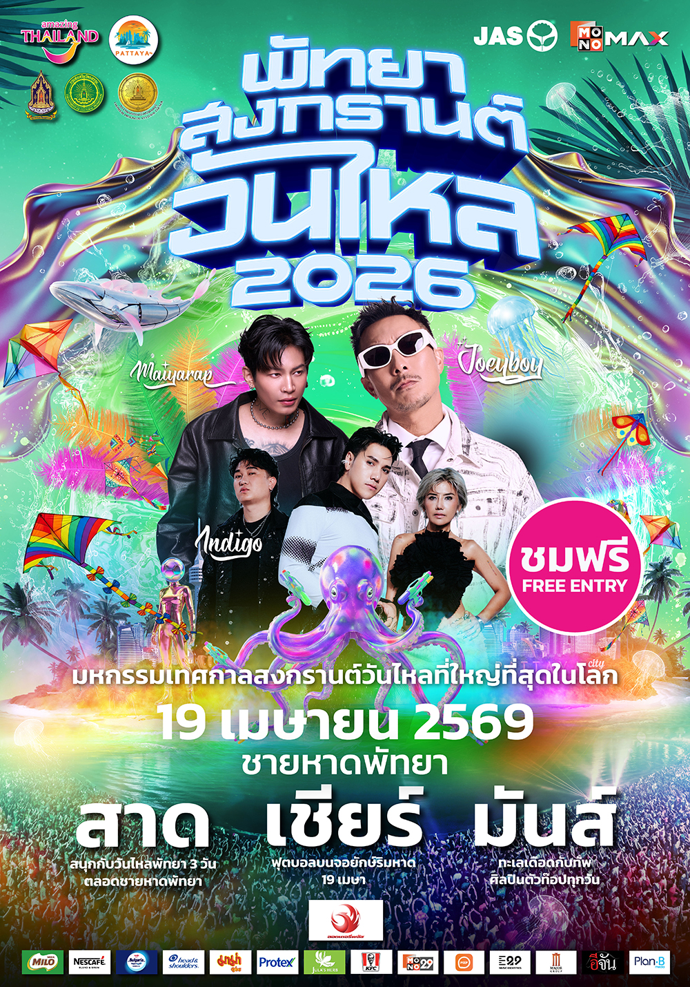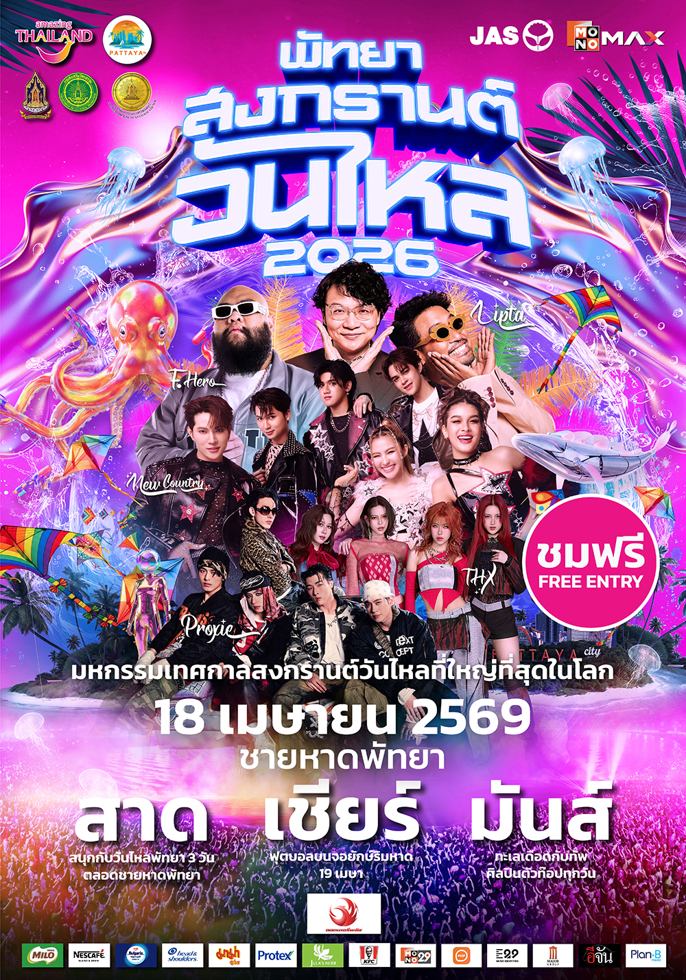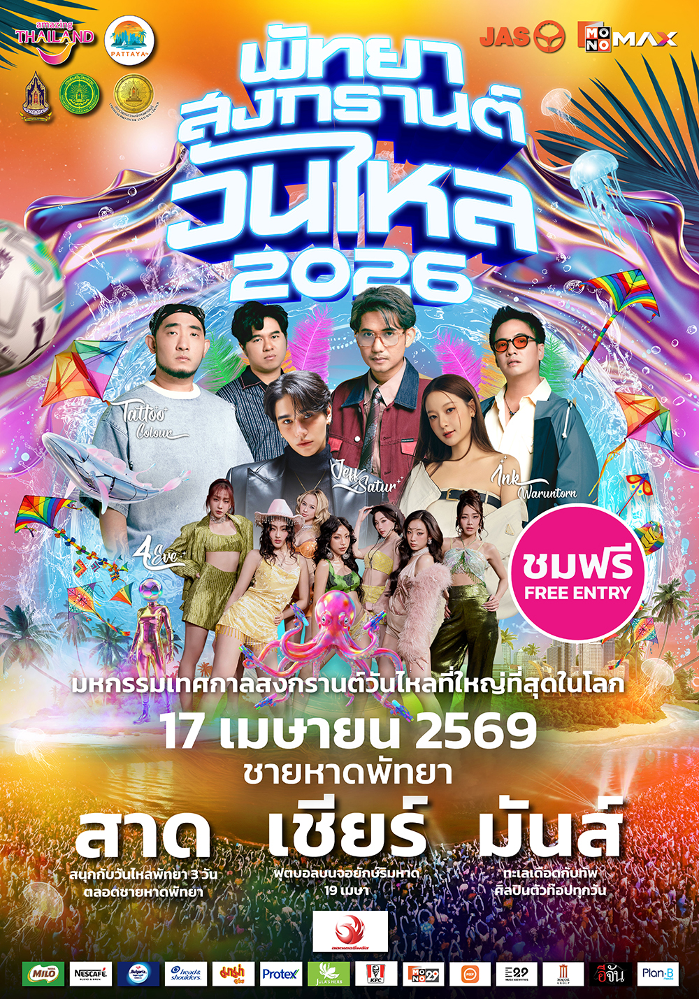 งานสงกรานต์ริมทะเลสุดยิ่งใหญ่แห่งเดียวในโลก!! เตรียมพบกับงานสงกรานต์วันไหลริมทะเลสุดยิ่งใหญ่แห่งเดียวในโลก พร้อมมอบประสบการณ์ความบันเทิงครบวงจร ทั้งเล่นน้ำ เชียร์บอล และชมคอนเสิร์ต ภายใต้ความร่วมมือของ การท่องเที่ยวแห่งประเทศไทย สำนักงานพัทยา, เมืองพัทยา และ สำนักงานวัฒนธรรมจังหวัดชลบุรี ร่วมกับ MONOMAX (โมโนแม็กซ์) จัดงาน “พัทยา สงกรานต์ วันไหล 2026” เพื่อตอกย้ำภาพลักษณ์เทศกาลระดับแลนด์มาร์คของเมืองพัทยาในสายตานักท่องเที่ยวทั่วโลก ปีนี้จัดเต็มความยิ่งใหญ่ด้วยกิจกรรมเล่นน้ำสงกรานต์ตลอดแนวชายหาดพัทยา ผสานความสนุกเข้ากับเสน่ห์ของวัฒนธรรมไทยอย่างลงตัว โดยสภาวัฒนธรรมจังหวัดชลบุรีร่วมเนรมิตพื้นที่วัฒนธรรม