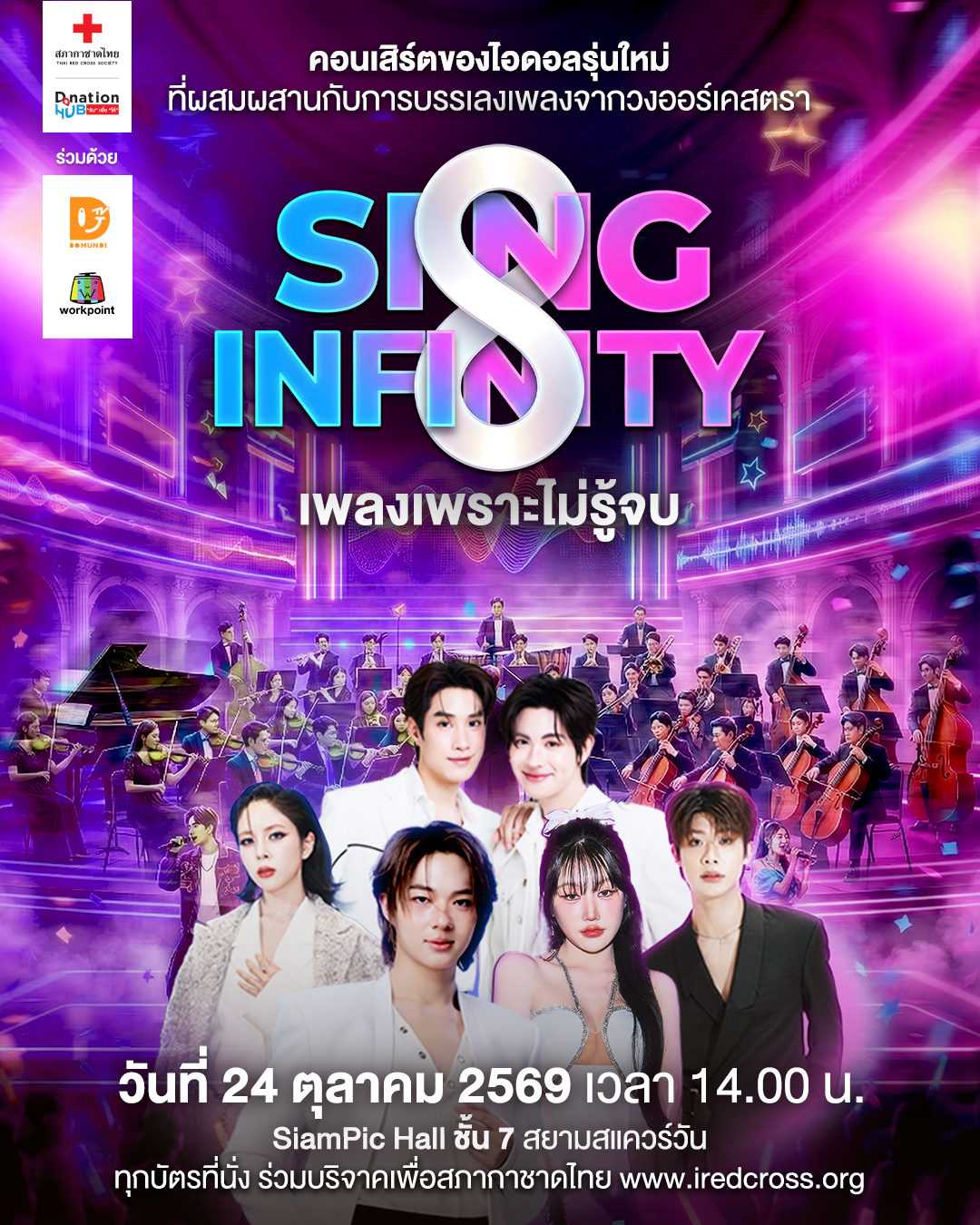 และในวาระพิเศษที่ สภากาชาดไทย ครบ 133 ปี ในวันที่ 26 เมษายน 2569 Donation HUB สภากาชาดไทย ร่วมกับ เวิร์คพอยท์ กรุ๊ป กับครั้งแรกของซีรีส์คอนเสิร์ตเพื่อการกุศลที่จุดพลังแห่งการให้ ตลอดปี 2569 “The GIVING CONCERT” 3 Generations • 1 HEART จาก 1 ปณิธานแห่งการให้ สู่ 3 Generations สืบสานพันธกิจสภากาชาดไทย สร้าง 3 ปรากฏการณ์ทางดนตรีเพื่อการแบ่งปัน จากคนรุ่นใหญ่ สู่คนรุ่นกลาง และส่งต่อไปยังคนรุ่นใหม่ ที่จะเป็นตัวแทนในการถ่ายทอดปณิธานแห่งการให้และร่วมสนับสนุนภารกิจสภากาชาดไทยในการให้ความช่วยเหลือเพื่อนมนุษย์ได้อย่างยั่งยืน ผ่านเสียงดนตรีที่จะเป็นสื่อกลางและเชื่อมโยงน้ำใจของคนไทยทุกวัยเข้าด้วยกัน”