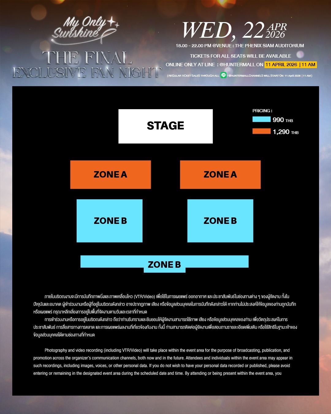 • Zone A (ฟินระดับใกล้ชิด) : ราคา 1,290 บาท (มีแค่ 114 ที่นั่งเท่านั้น!)