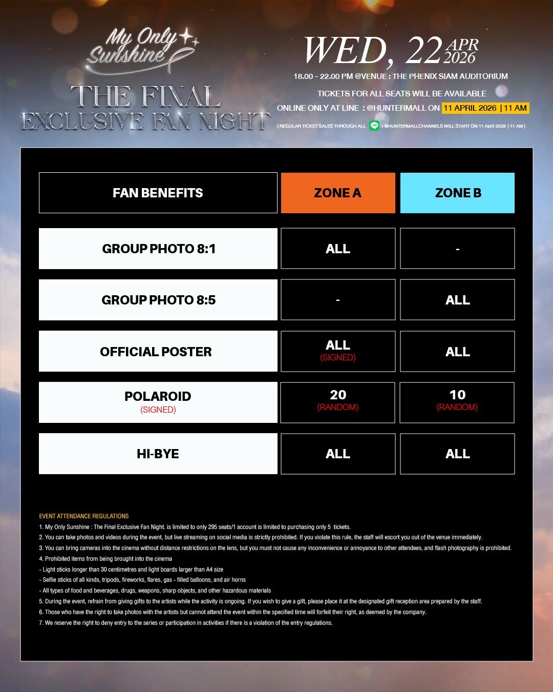 ห้ามพลาด! บัตรมีน้อยแต่คนคอยเยอะมาก ใครไม่อยากพลาดโมเมนต์สุดฟิน เตรียมตัวให้พร้อม เพราะบัตรมีจำนวนจำกัดสุด ๆ แบ่งเป็น :