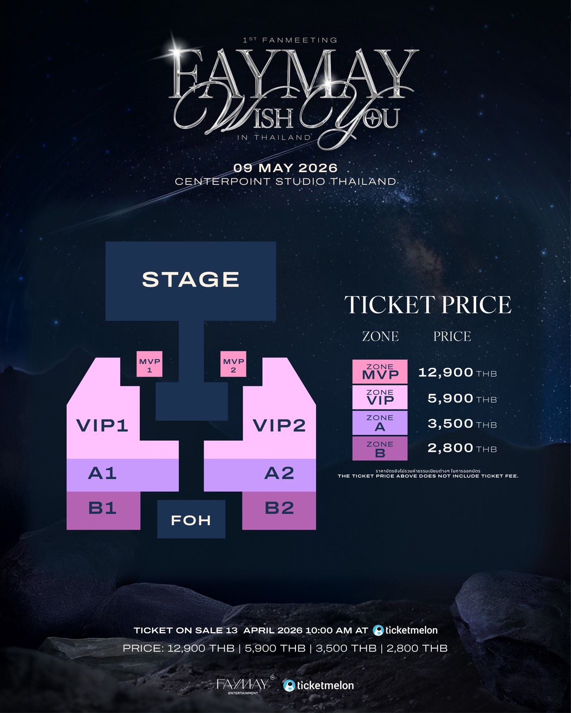 เปิดจำหน่ายบัตรแล้ววันนี้ทาง: https://www.ticketmelon.com/FAYMAY/FAYMAY1stFanmeeting