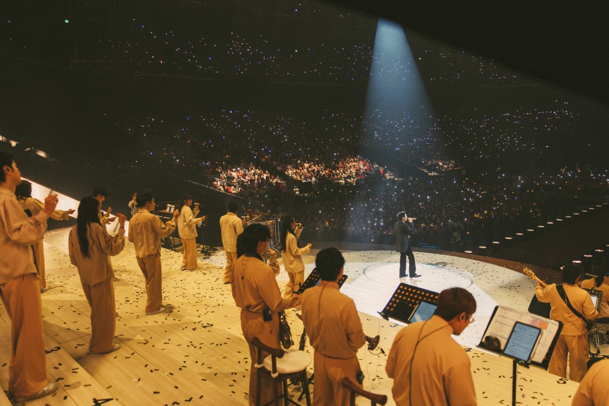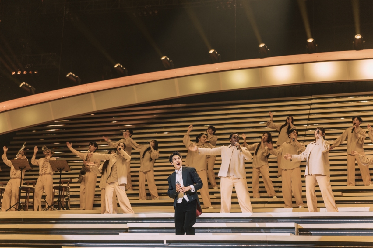 จากนั้น บิวกิ้น นำพาทุกคนเข้าสู่ช่วงสุดพิเศษ กับโชว์ที่ผ่านการเรียบเรียงดนตรีใหม่และเสียงบรรเลงจากวงเครื่องสายที่ช่วยขยายความรู้สึกของทุกบทเพลงให้ชัดขึ้น เริ่มจาก ‘การเดินทางที่สวยงาม (A Beautiful Ride)’ เข้าสู่โมเมนต์ที่สะกดคนดูด้วยเพลง ‘หยงหย่วน 永远 (Ever-Forever)’ นำเนื้อร้องจากเพลง ‘สวยงามเสมอ’ มาถ่ายทอดใหม่ในเวอร์ชันภาษาจีนที่ลึกซึ้งกินใจ และต่อเนื่องความอบอุ่นด้วย ‘You’re My Everything’ เพลงที่เป็นจุดเริ่มต้นสำคัญในเส้นทางศิลปิน ก่อนจะค่อย ๆ ดึงอารมณ์ให้ดำดิ่งไปกับเพลง ‘หลอกกันทั้งนั้น’ และ ‘หรูเหอ 如何 (Skyline)’ เพลงสุดซึ้งที่ทุกคนชื่นชอบ พร้อมส่งต่อความประทับใจในเพลง ‘ชอบตัวเองตอนอยู่กับเธอ (I Like Us)’ มาถึงพาร์ตสุดสร้างสีสันกับ Broadway Musical และ Jazz Big Band ที่บิวกิ้นถ่ายทอดออกมาได้อย่างมีเสน่ห์และคลาสสิก พร้อมเชื่อมเข้าสู่เพลงระดับตำนานอย่าง ‘I Just Called To Say I Love You’ และ ‘My Way’ เติมเต็มค่ำคืนนี้ให้ยิ่งอบอุ่นขึ้นไปอีกขั้น